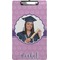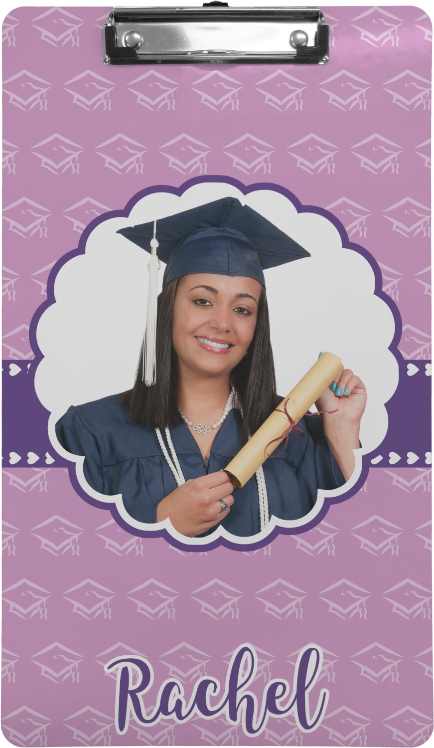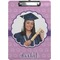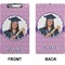 These custom clipboards are made from a strong hardboard and are coated with a glossy finish that accentuates the colors of your design. Alongside a retractable hook at its top, these decorative clipboards also feature sturdy clips to secure several sheets of paper. We sell these clipboards in two separate sizes. Our letter size measures at 12.5" L x 9" W, while our legal clipboard is approximately 15.5" L x 9" W. On both models, your personalization is printed on both sides of this clipboard and can be customized individually.