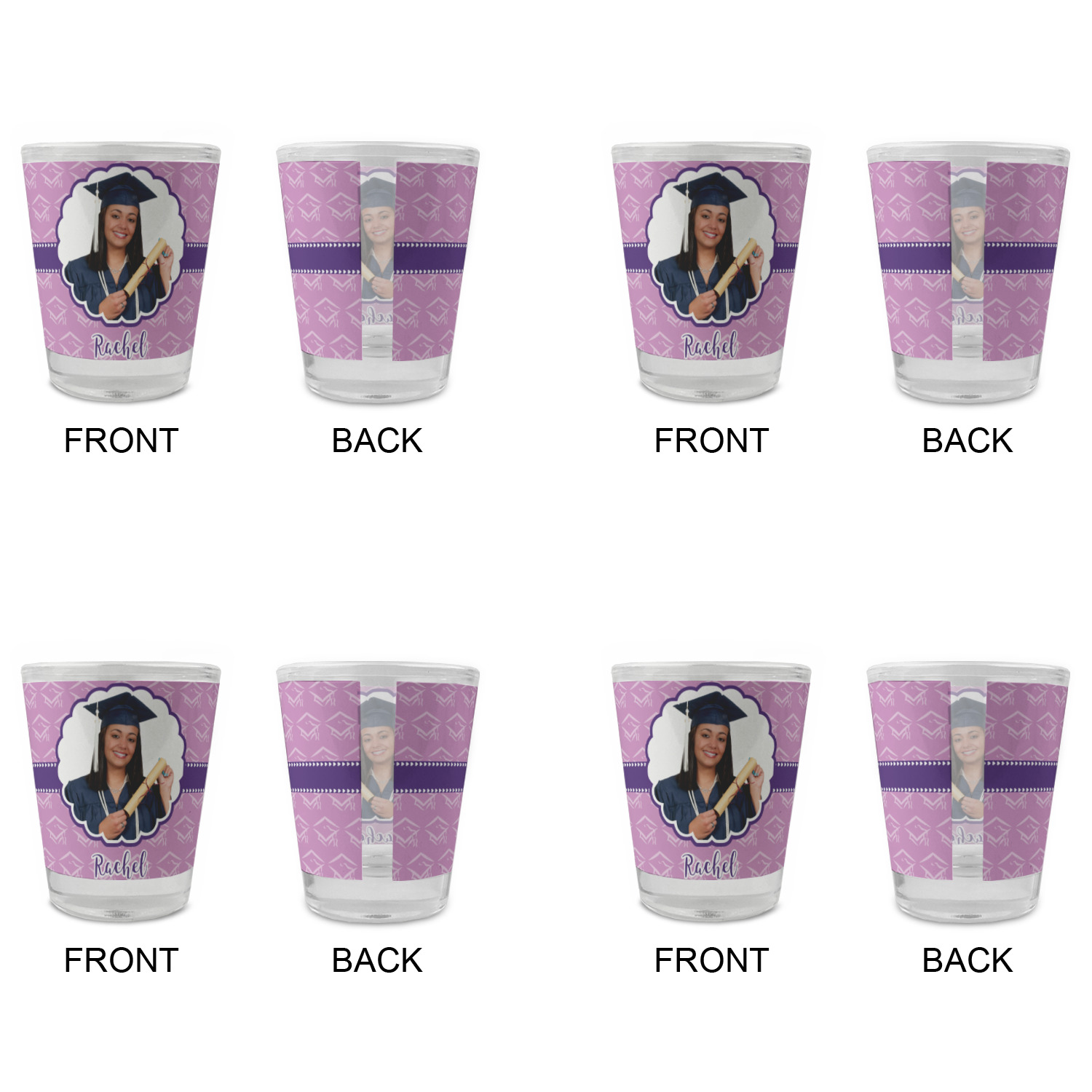 Made with frosted glass, these shot glasses are printed in full color with the design of your choice. They are a standard 1.5oz shot glass and are 2.4" tall. The print is wrapped around the shot glass in a full wrap and boldly displays your customization.