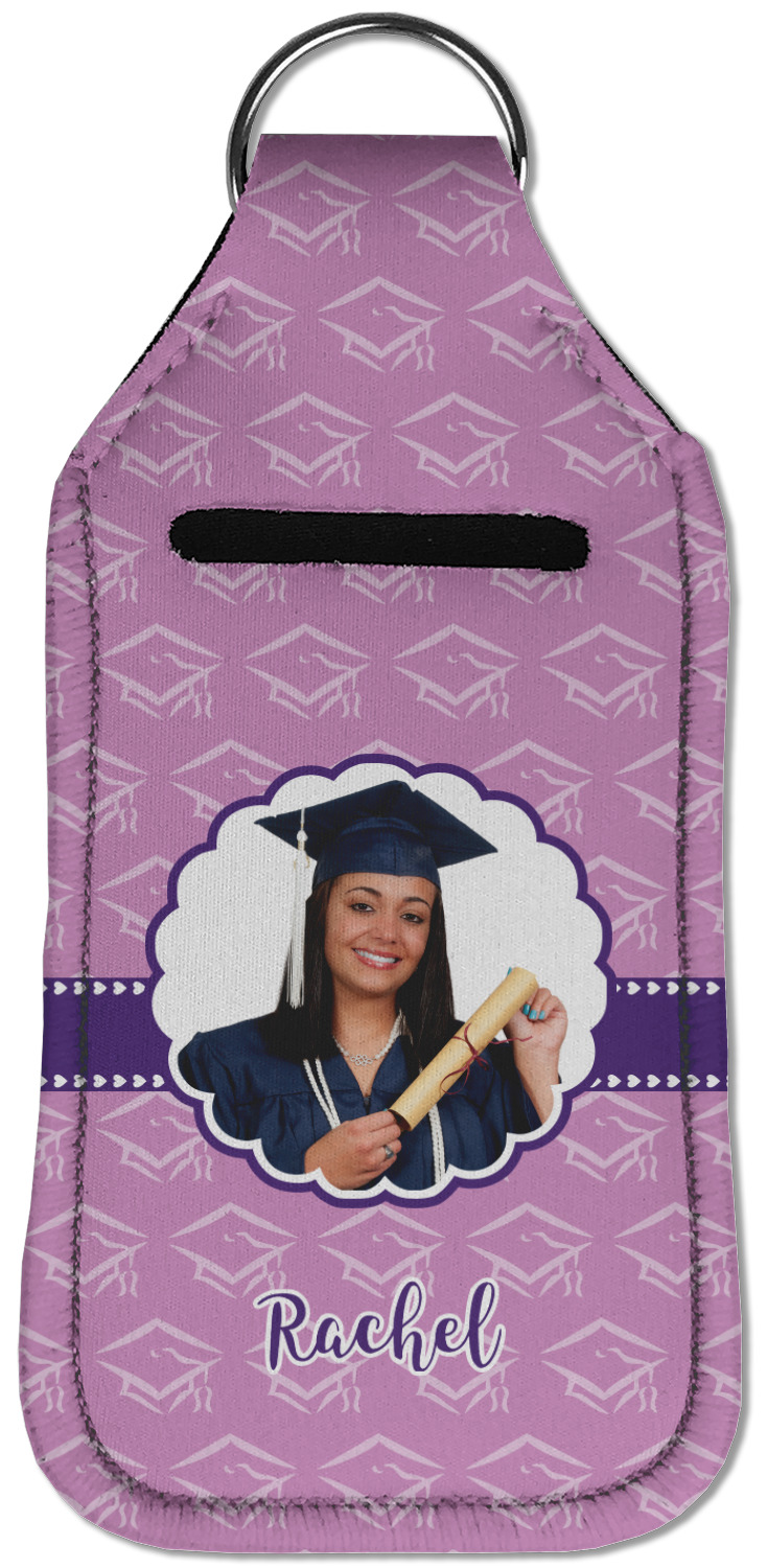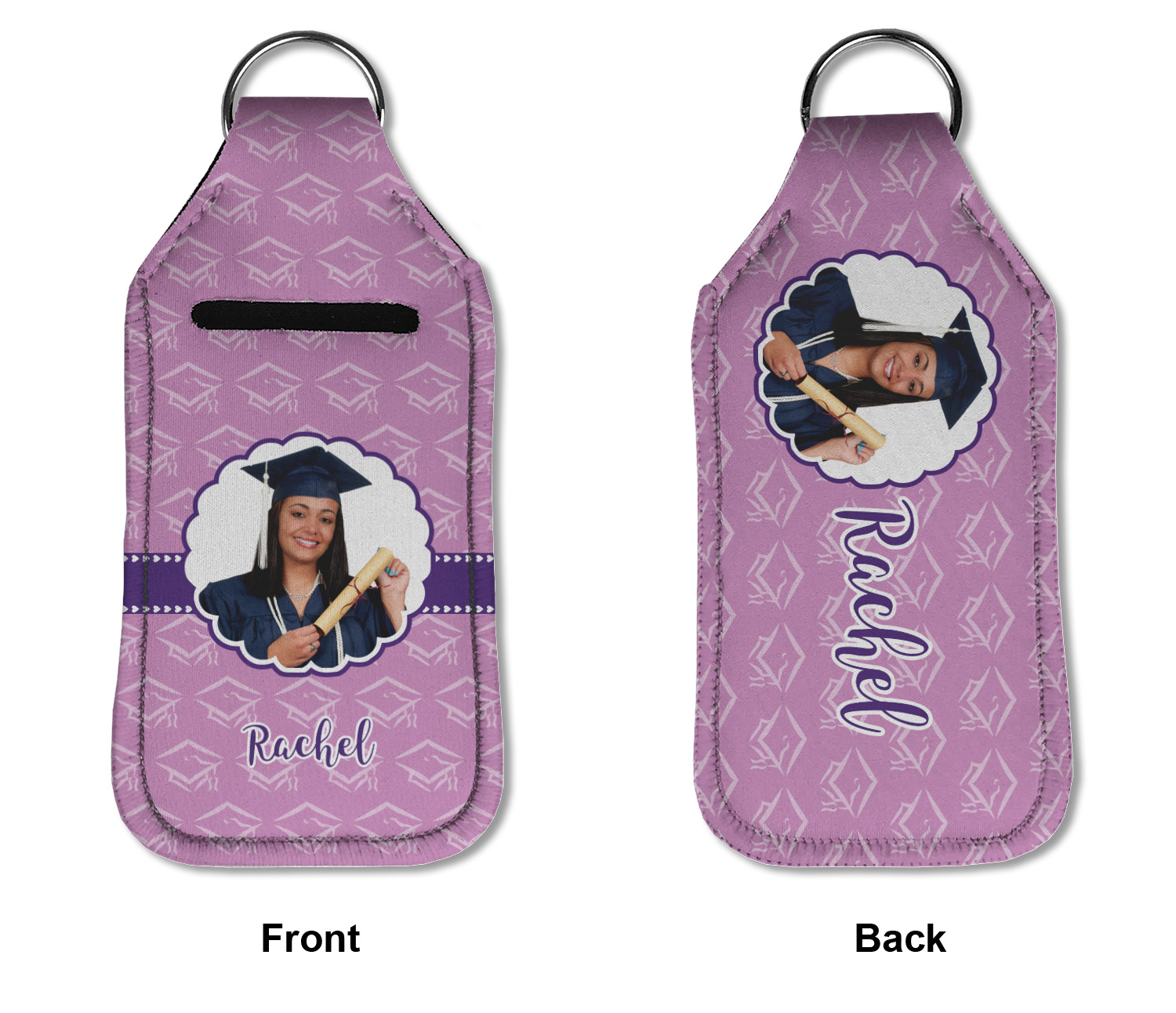 Each hand sanitizer holder comes with its own empty travel-sized, refillable hand sanitizer sure to fit snug in your customized sanitizer case! Our hand sanitizer cases are a durable, yet soft neoprene material sure to last any daily activities or travel agenda. Customize and personalize a hand sanitizer bottle holder with one of our two sizes - small (4.25" x 2.25") or large (5.5" x 2.5"). Each travel sanitizer holder comes with a keyring for attachment on bags, keys, or more!