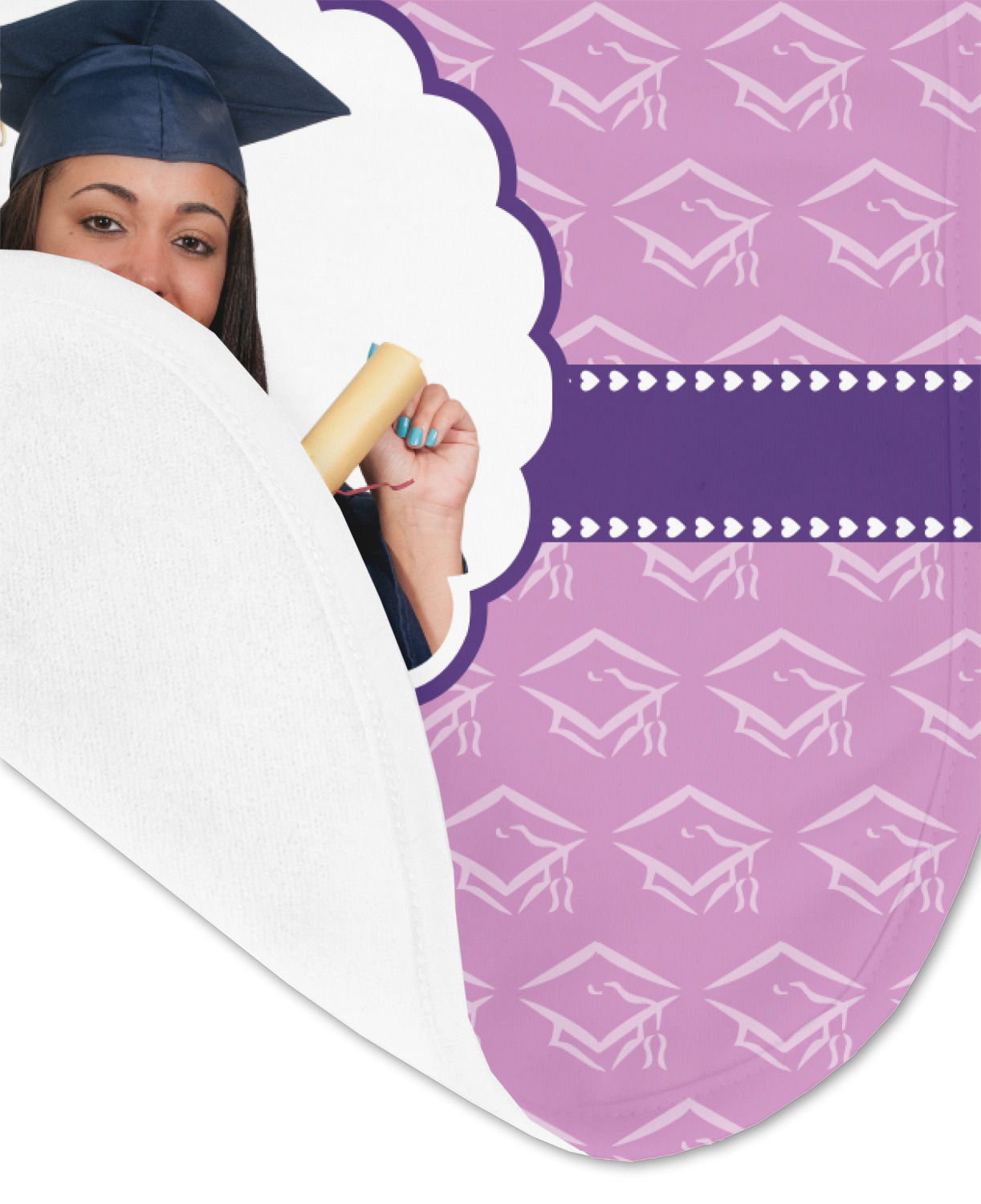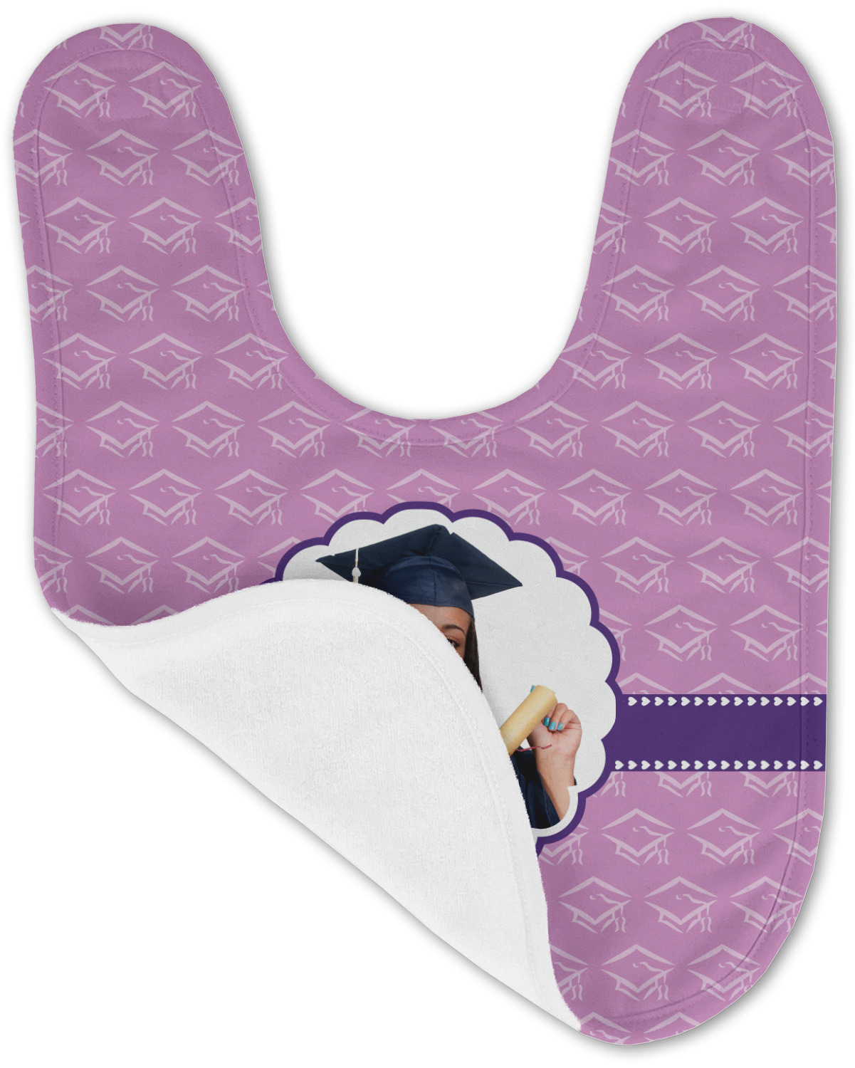 Made of soft polyester, each customizable bib hugs comfortably around the neck to catch every drip and drool. Each bib design is printed with baby-safe ink and finished with a secure stitch pattern and velcro clasp. We carry two customizable bib styles -Microfiber Velour and Jersey Knit.