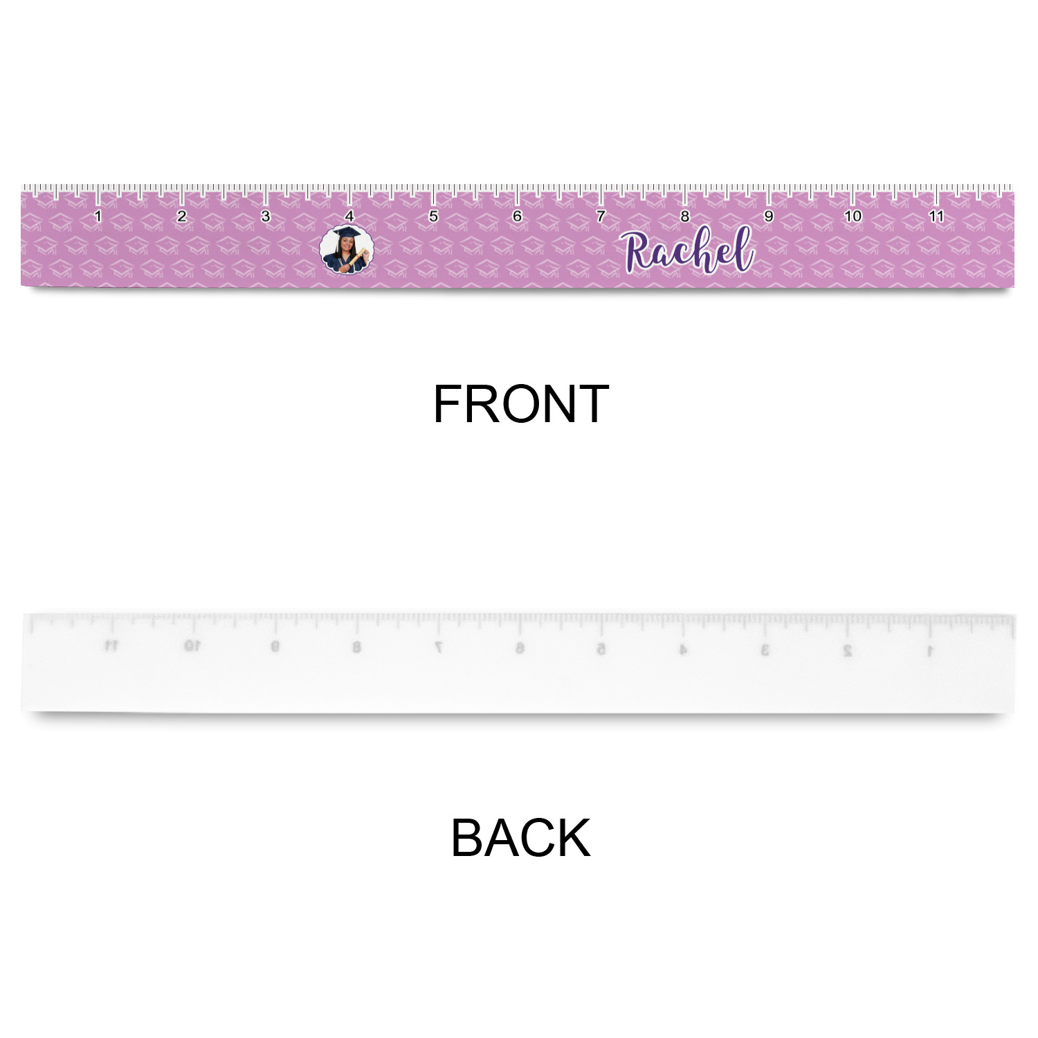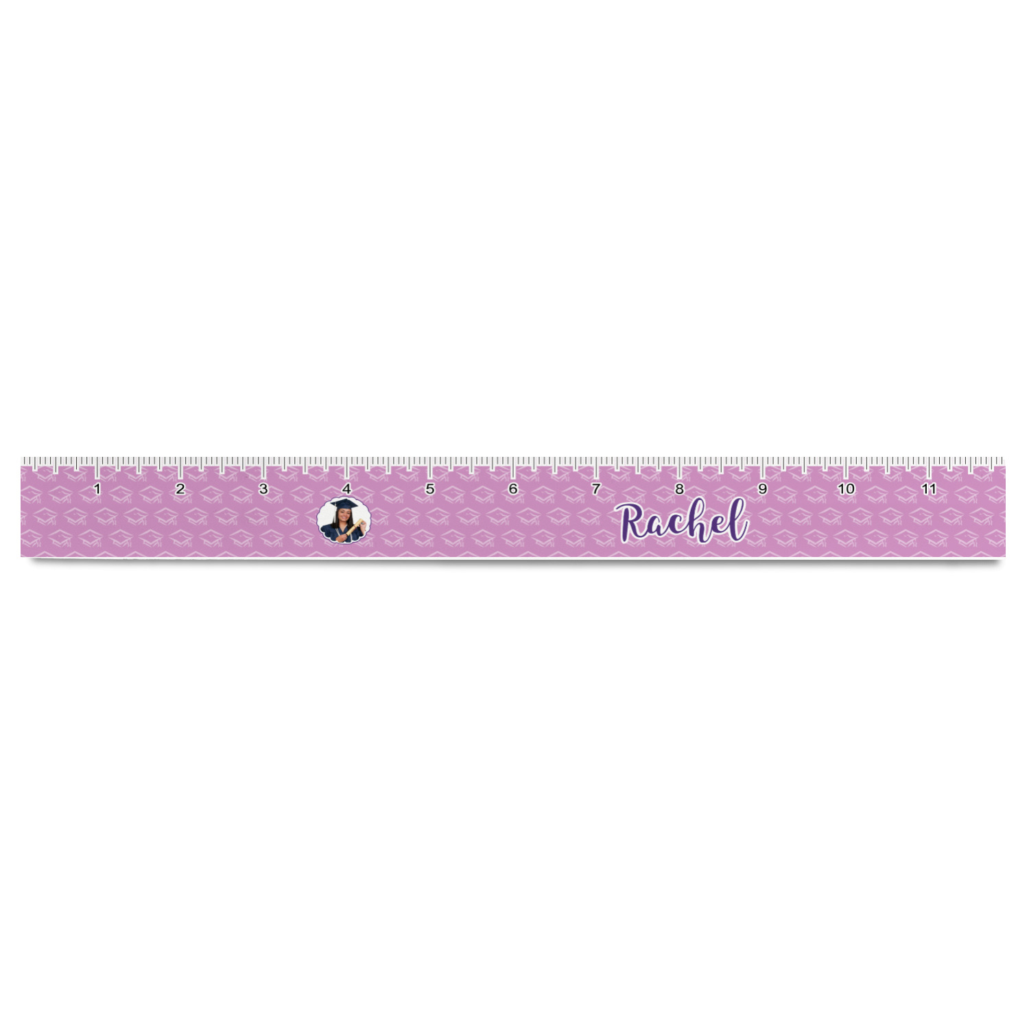 For our design, we chose a mortar cap background in violet. We then layered it with a heart ribbon and a photo / text personalization style. We chose the scalloped label for our female graduate and added her name. There are many other graduate patterns in our system including patterns for math, science, physics etc., so you can easily customize it for you graduate. We also have more masculine ribbons & labels for you male graduate!