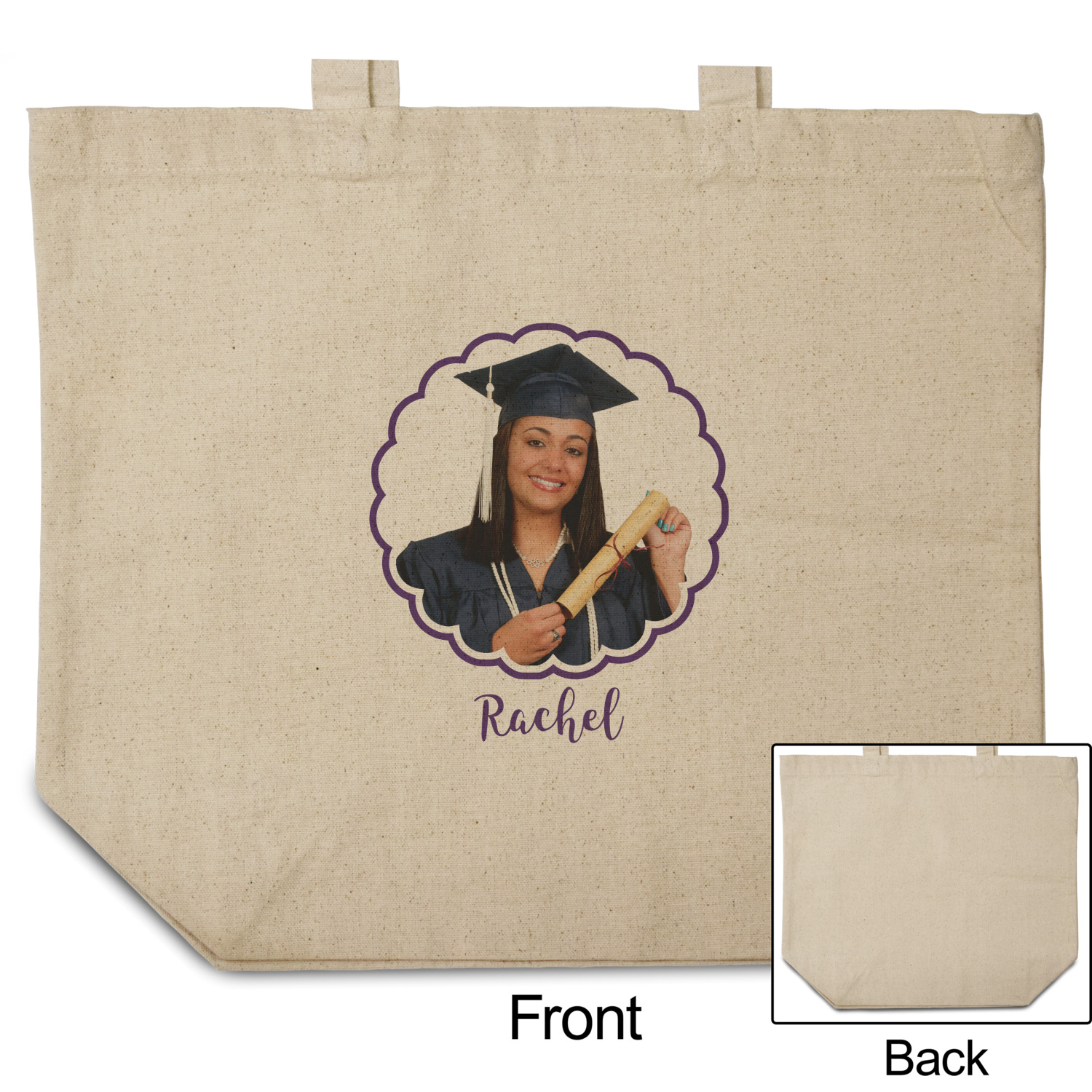 These cotton totes are washable and easy to care for, and they can be folded flat for storage. Your artwork, logo, or photo is printed in full color directly on the cotton tote in the front.