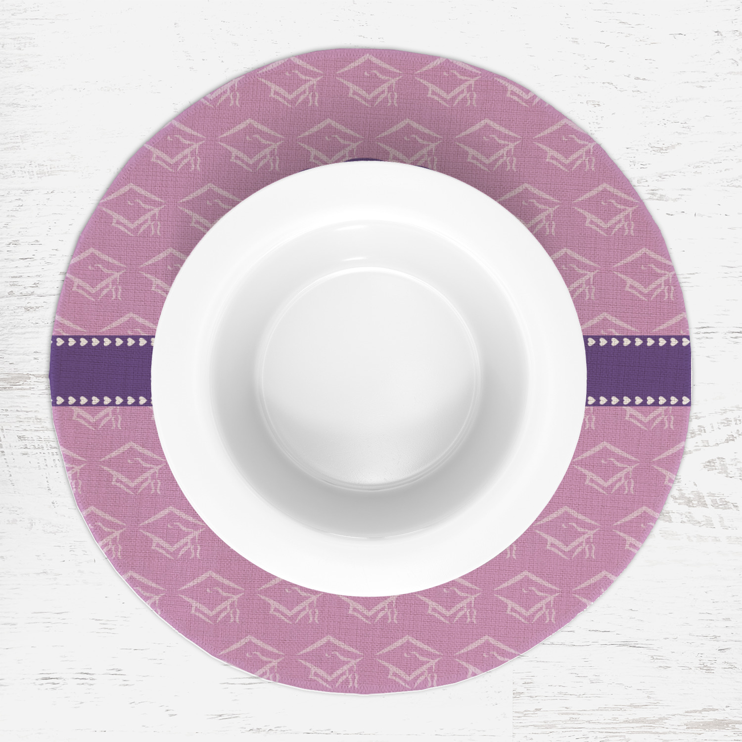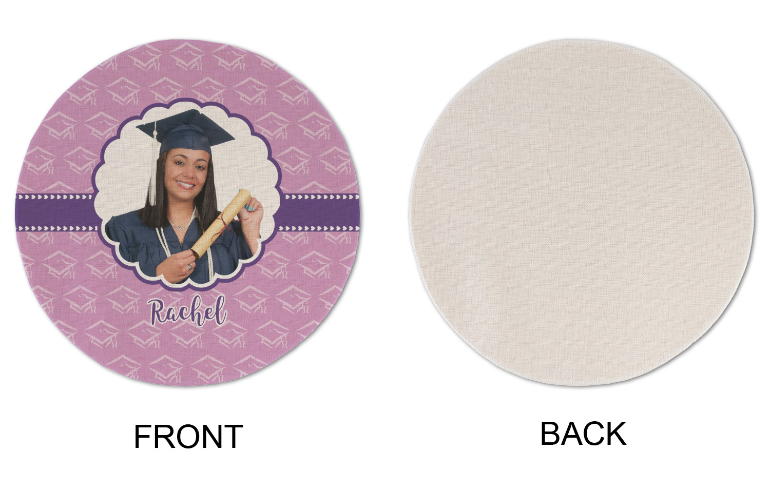 For our design, we chose a mortar cap background in violet. We then layered it with a heart ribbon and a photo / text personalization style. We chose the scalloped label for our female graduate and added her name. There are many other graduate patterns in our system including patterns for math, science, physics etc., so you can easily customize it for you graduate. We also have more masculine ribbons & labels for you male graduate!
