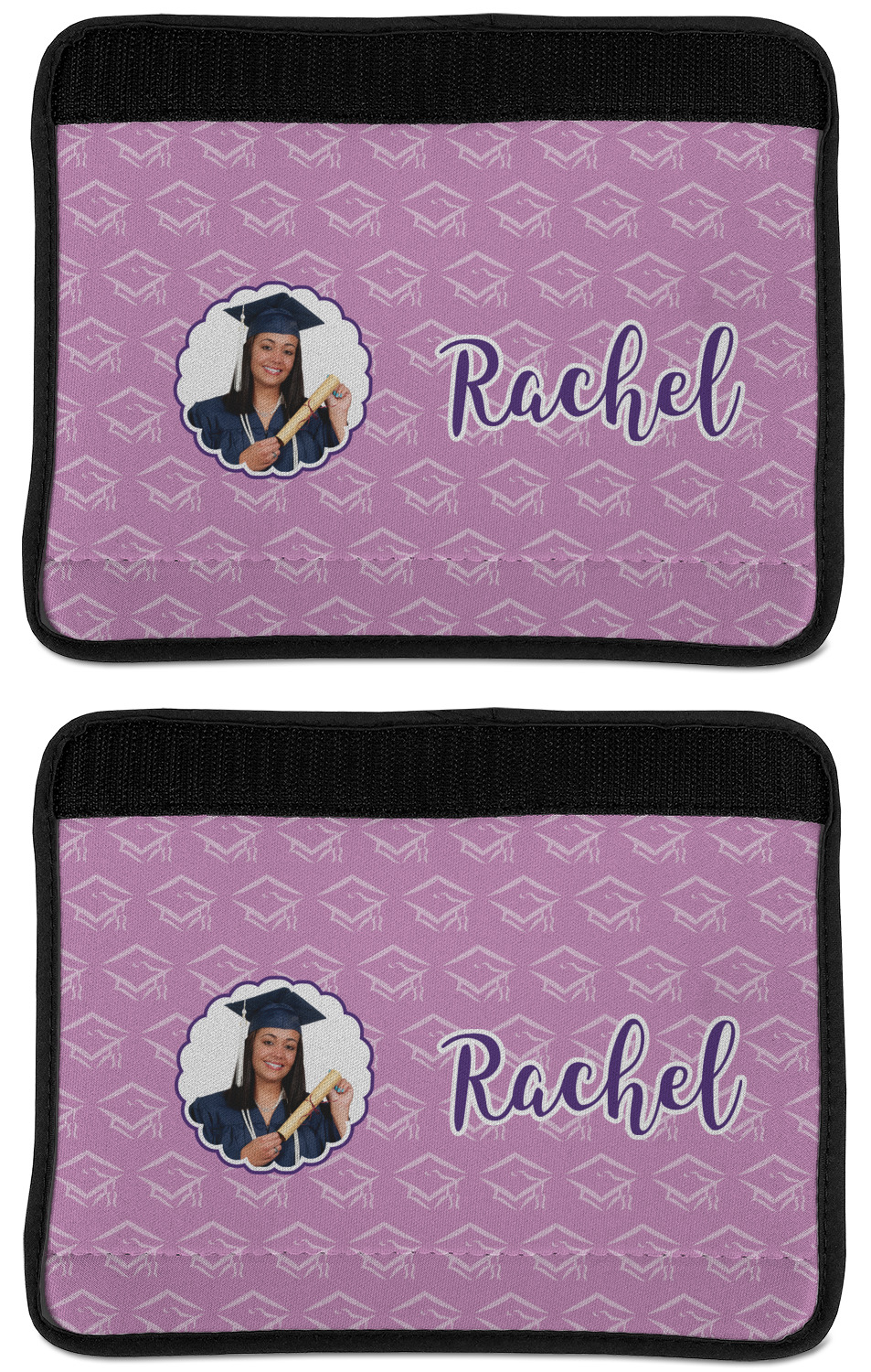 Made from neoprene, our seat belt strap covers wrap around the belt itself and have a Velcro tab for easy attachment and closure. The belt's edges are trimmed with a black polyester for a secure finish. Each cover is 9.5 by 7 inches when open and 9.5 by 2.5 inches when closed. We print your personalized design on the face of the seat belt pad.