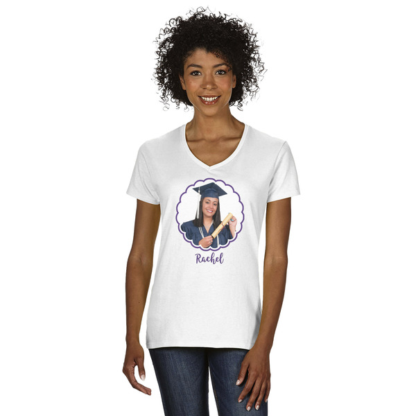 Introducing our versatile Women's V-neck shirt, tailored for a flattering missy contoured silhouette. Crafted from premium 5.3 oz. USA cotton with sustainable practices, it features cap sleeves and a tear-away label for added convenience. With sizes catering to all, enjoy comfort and style in every wear.