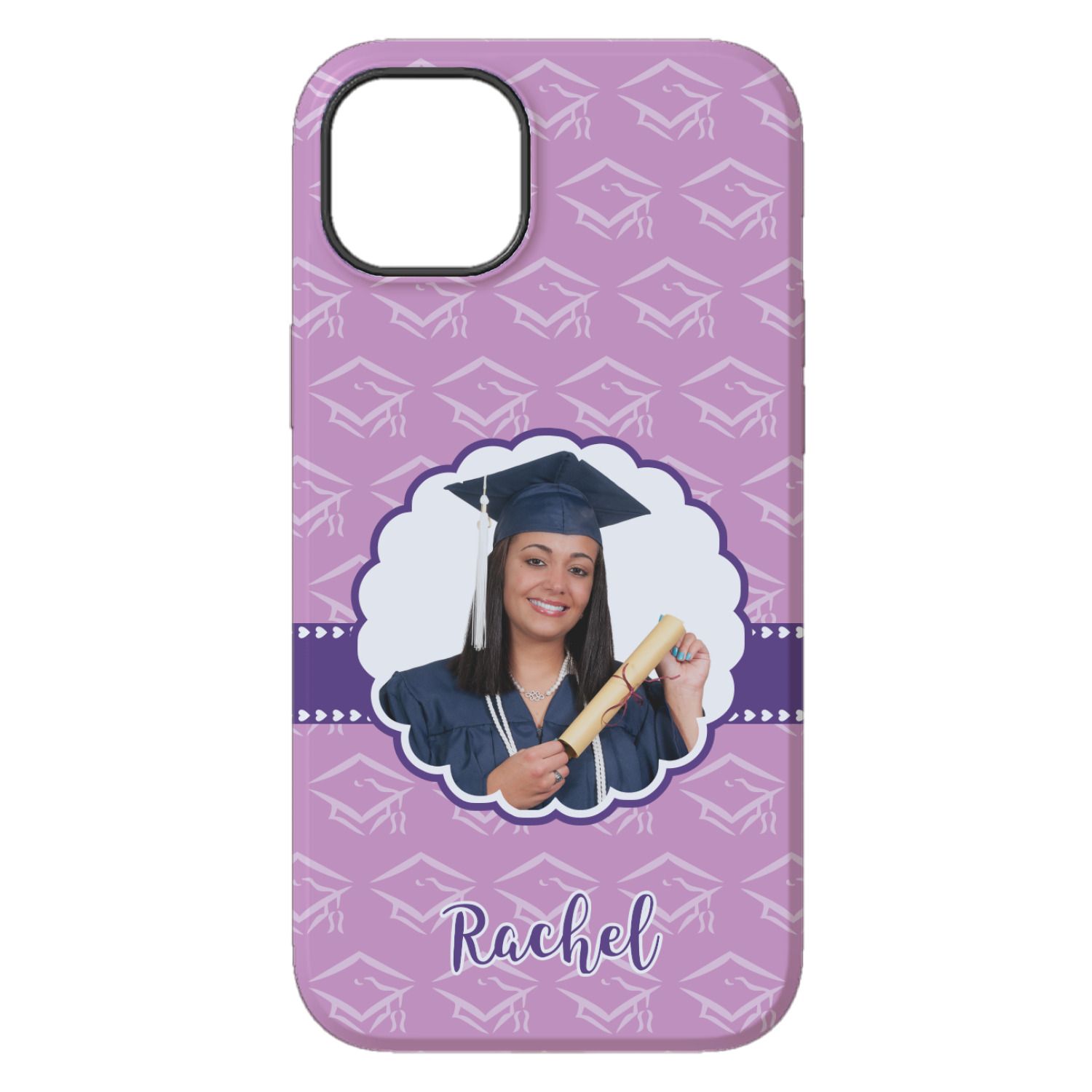 For our design, we chose a mortar cap background in violet. We then layered it with a heart ribbon and a photo / text personalization style. We chose the scalloped label for our female graduate and added her name. There are many other graduate patterns in our system including patterns for math, science, physics etc., so you can easily customize it for you graduate. We also have more masculine ribbons & labels for you male graduate!