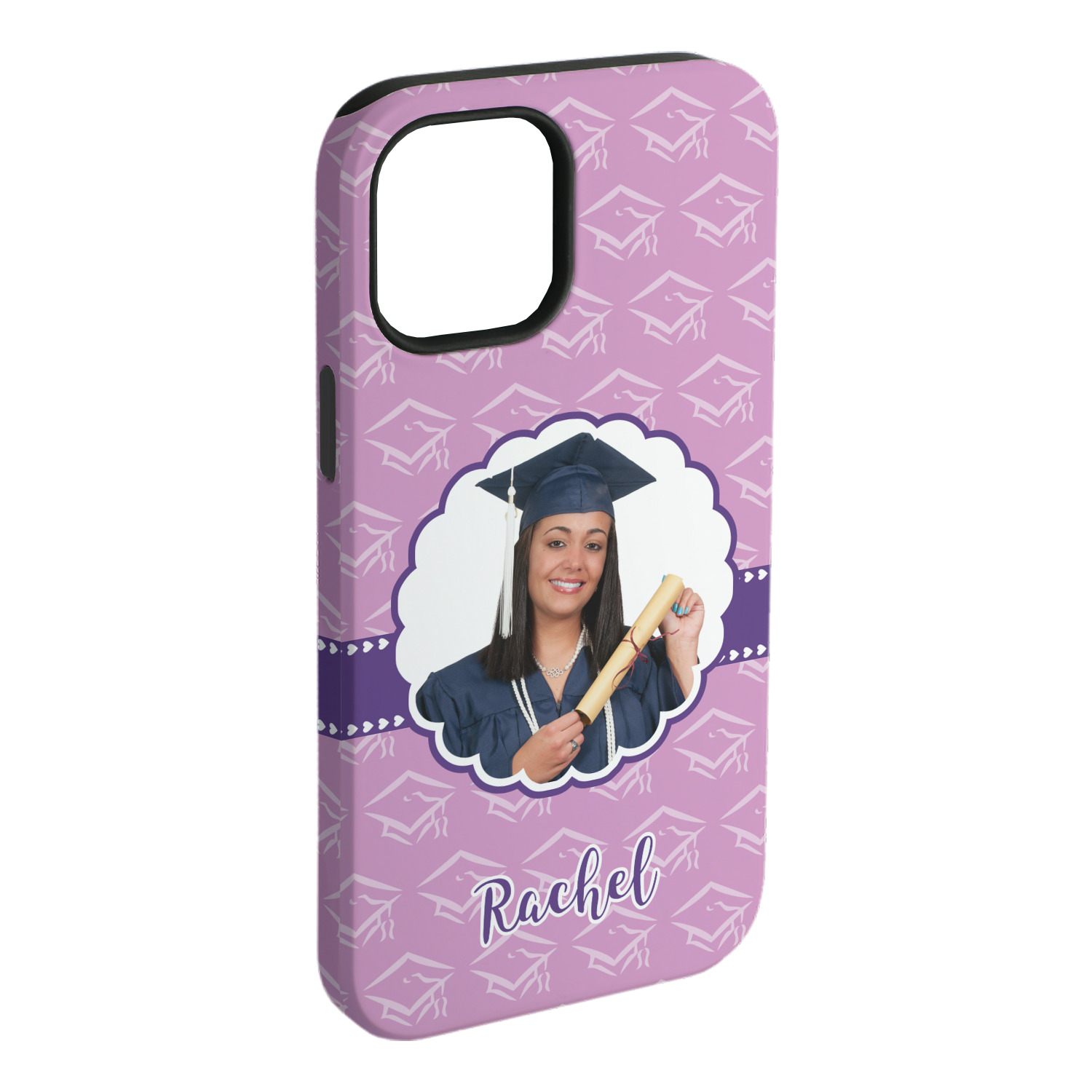 For our design, we chose a mortar cap background in violet. We then layered it with a heart ribbon and a photo / text personalization style. We chose the scalloped label for our female graduate and added her name. There are many other graduate patterns in our system including patterns for math, science, physics etc., so you can easily customize it for you graduate. We also have more masculine ribbons & labels for you male graduate!