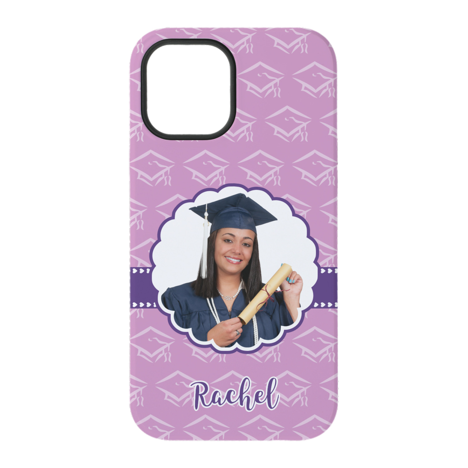 For our design, we chose a mortar cap background in violet. We then layered it with a heart ribbon and a photo / text personalization style. We chose the scalloped label for our female graduate and added her name. There are many other graduate patterns in our system including patterns for math, science, physics etc., so you can easily customize it for you graduate. We also have more masculine ribbons & labels for you male graduate!