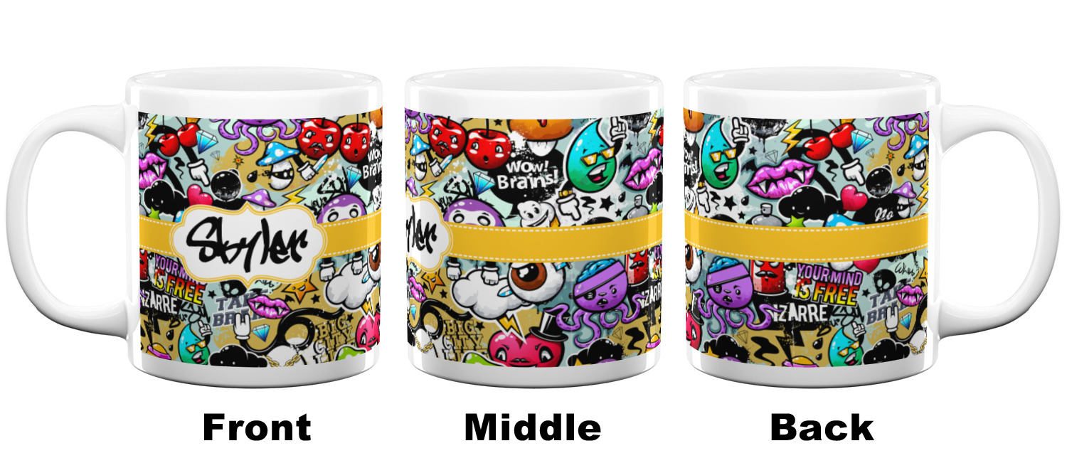 Our ceramic mugs have your design or photo printed along the surface with a gloss finish. The ceramic material of our mugs is dishwasher and microwave safe so you can reheat your tea or coffee if needed! We offer two different base colors with multiple mug sizes. The white ceramic mugs come in three size options - 11 oz., 15 oz., and 20 oz. Our black ceramic mugs are sold in either 11 oz. or 15 oz. sizes.