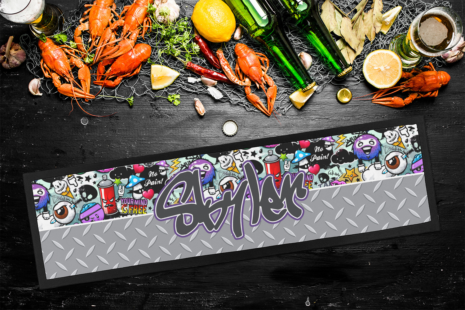 To personalized this design, we have added a ribbon with stitching along with a decorative label for your own text or name in a graffiti font!