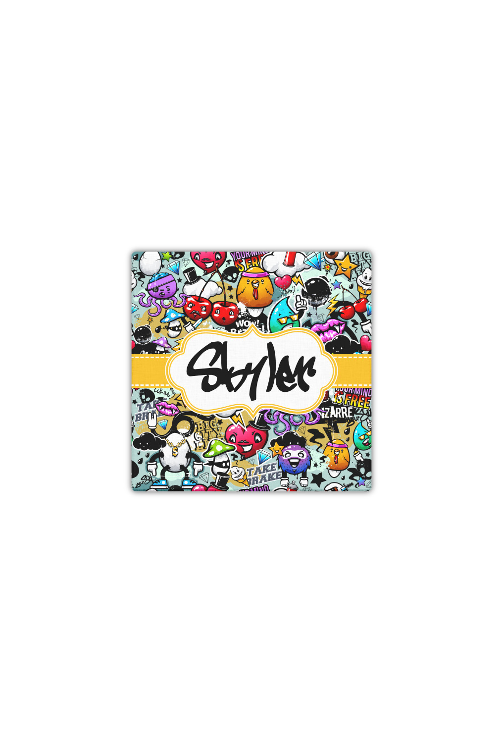 To personalized this design, we have added a ribbon with stitching along with a decorative label for your own text or name in a graffiti font!