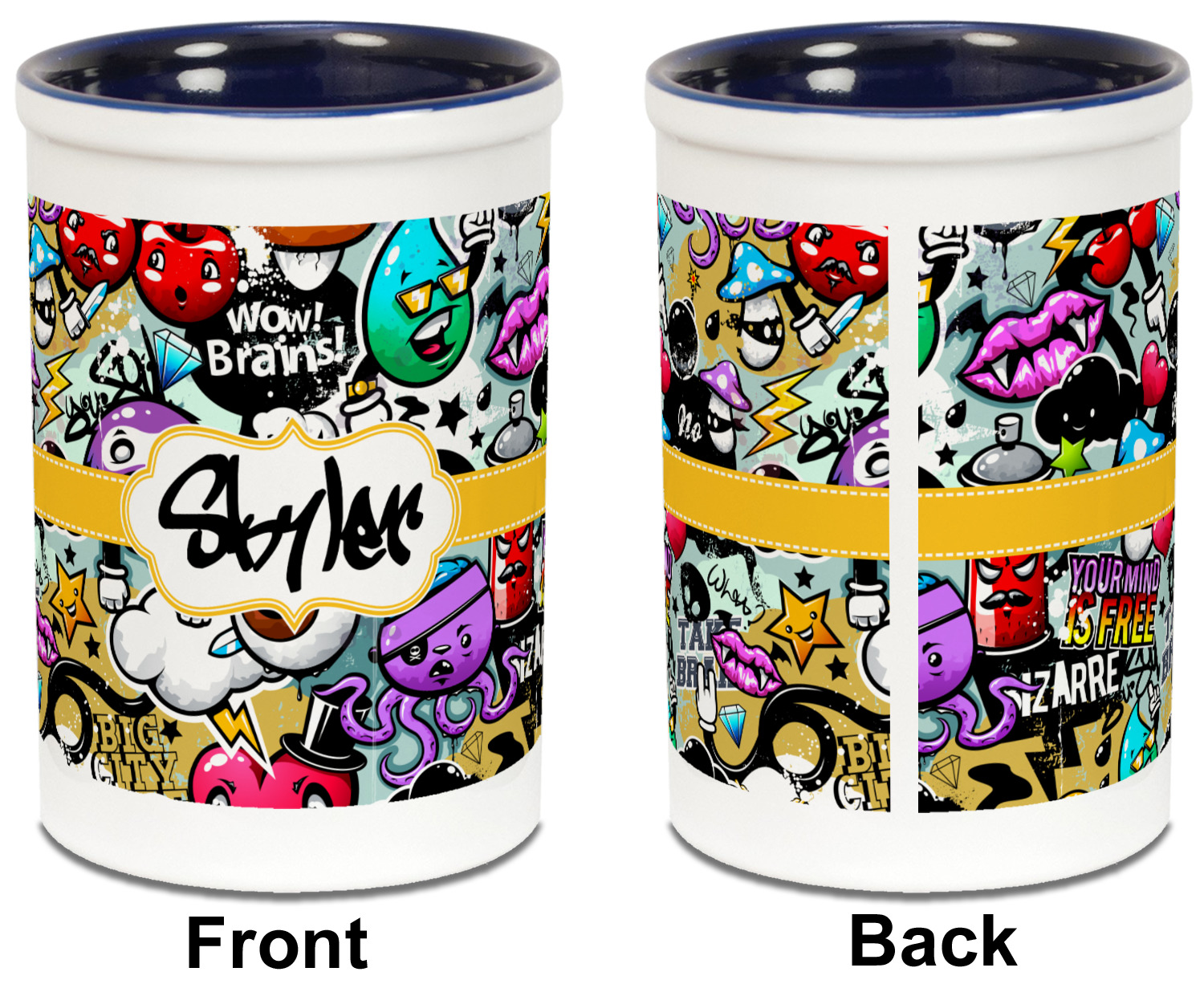 Need help with keeping the workspace clean and tidy? Try using our customizable pencil holders! They're great desk accents for the office, kids desk, or even vanity mirror. Our custom pencil holders are ideal for holding pens, pencils, and even brushes to keep your area from any clutters. The best part about our custom desk pen organizers is the two-toned look! Choose one from either our black or blue interior and customize the outside of the pencil holder with your own personalized design! Use our online design studio to create logos, monograms, or even print a favorite photo to display on the cup holder! Create a cute pencil holder for the kid's desk, or add a cool design to hold any brushes. The options are endless!