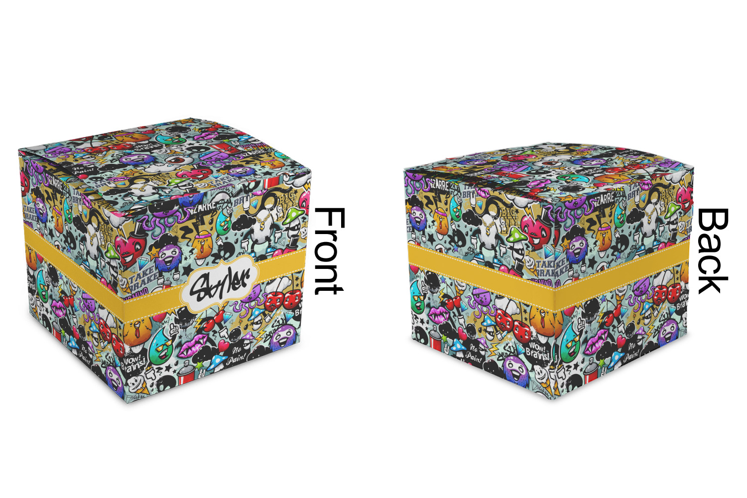To personalized this design, we have added a ribbon with stitching along with a decorative label for your own text or name in a graffiti font!