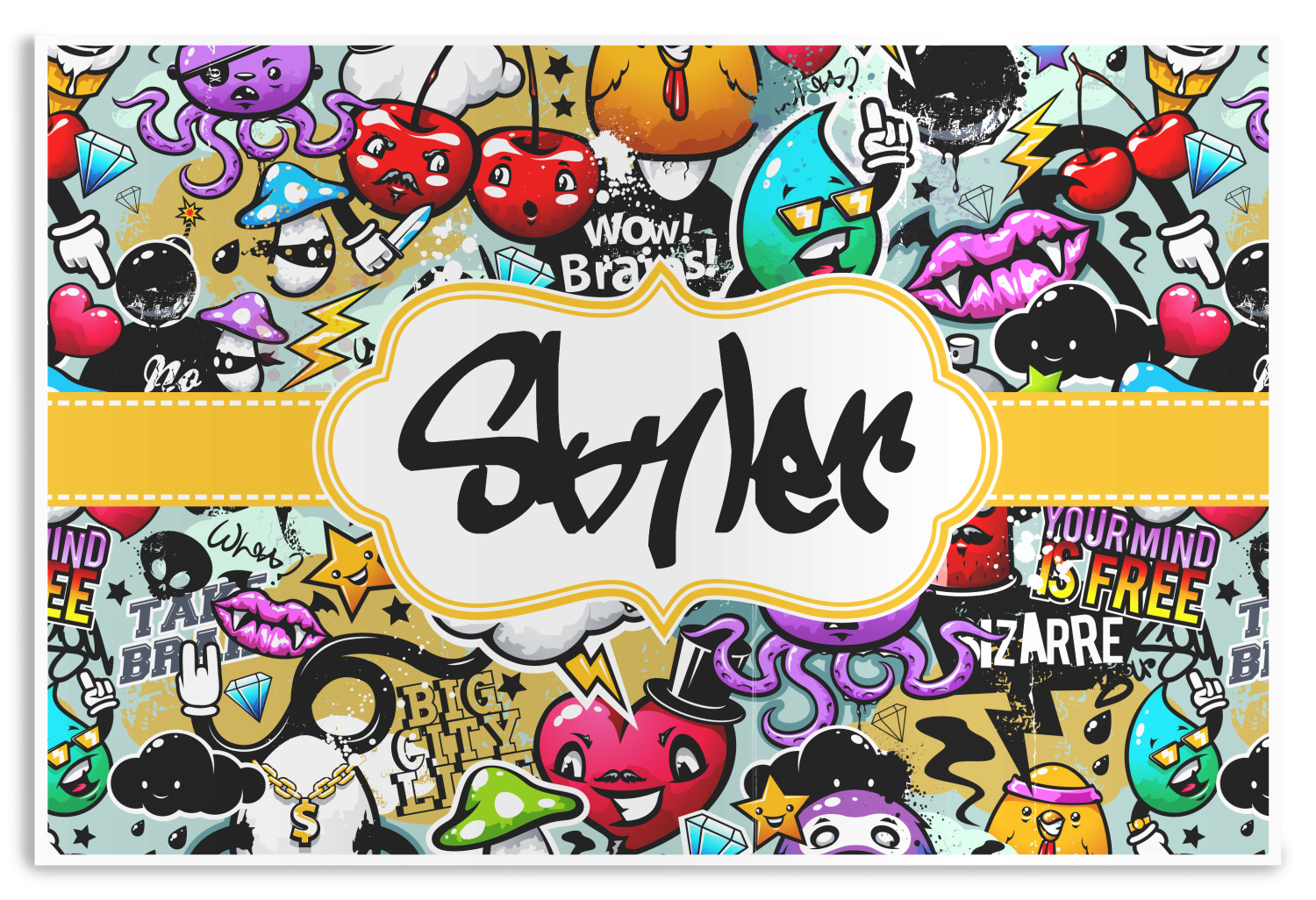 To personalized this design, we have added a ribbon with stitching along with a decorative label for your own text or name in a graffiti font!