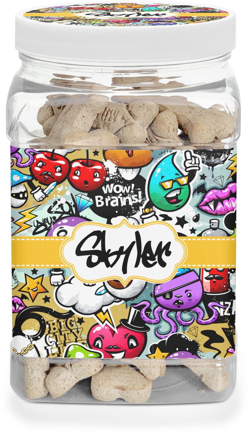 In the market for some other, cute pet supplies? Have a look at our Pet Accessories department, where you can customize a matching dog food bowl, dog food mat, or even a glass dog treat jar! Overjoyed with the idea of a customizable container? Explore the kitchen department within our Home and Garden category, where you can personalize snack containers for humans, as a gift, or just as a part of your kitchen decor!