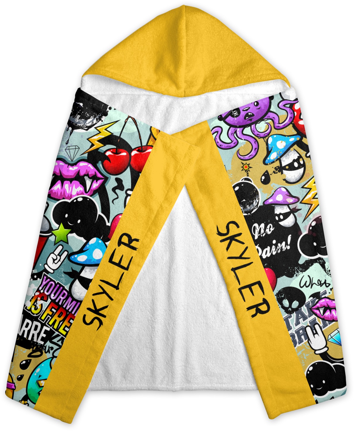 Wrap your kid in plush comfort when they come out from the bath or pool with one of our kids' hooded towels! These personalized hooded towels for kids are ideal for days at the beach or waterpark, or when they simply want to play in the sprinklers on a hot summer's day! Customize one with your child's name, favorite colors, graphics, and patterns on them to make it truly one-of-a-kind!