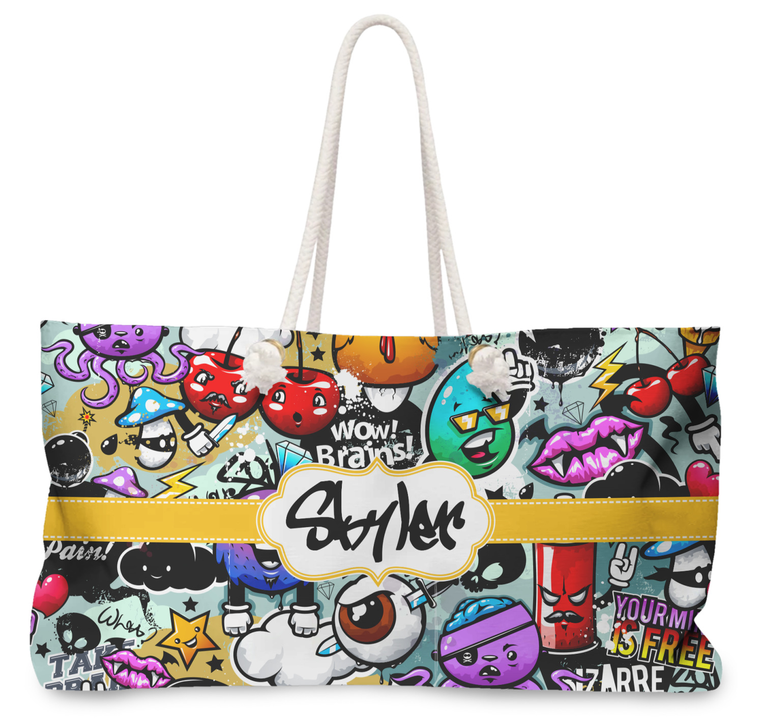 These weekender totes can be customized front and back. The totes are full all over print - so the choice of how background are endless - from beautiful floral or leaf patterns to geometrics or some classic Van Gogh artwork - the possibilities are endless. The totes can also be decorated with photos and logos.