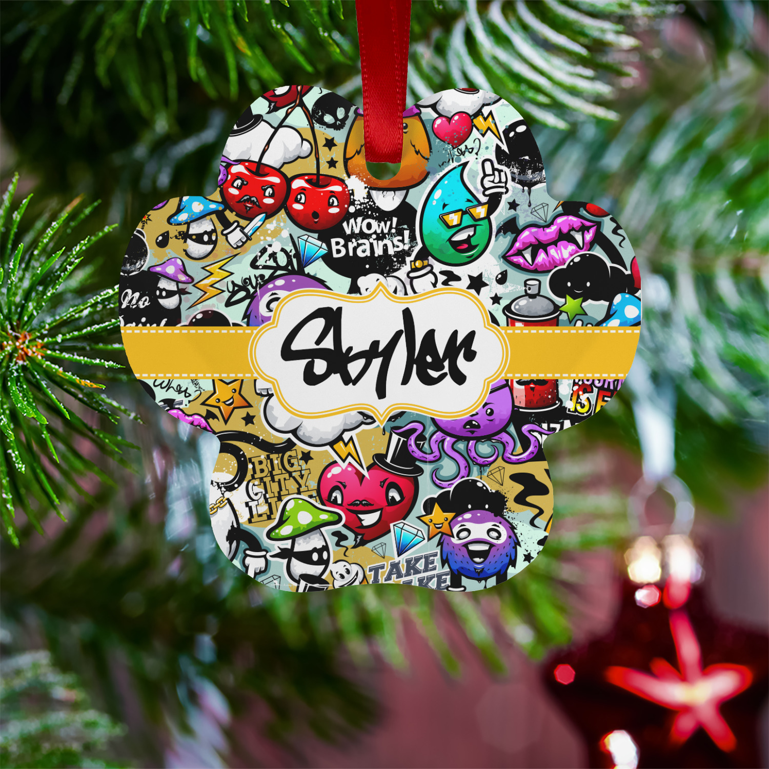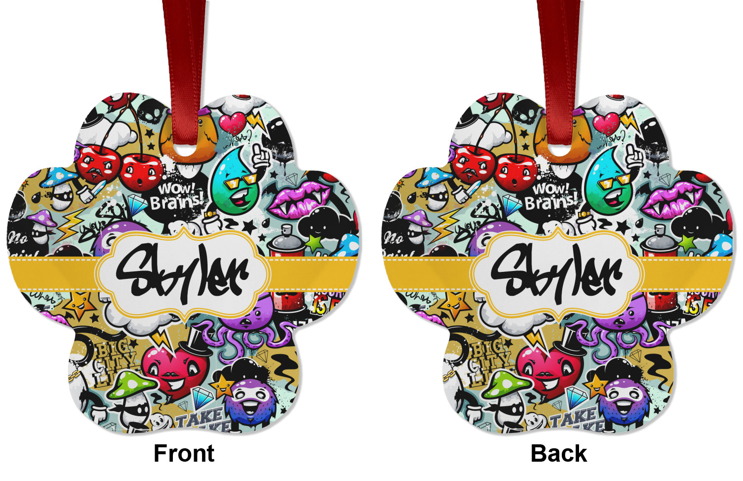 To personalized this design, we have added a ribbon with stitching along with a decorative label for your own text or name in a graffiti font!