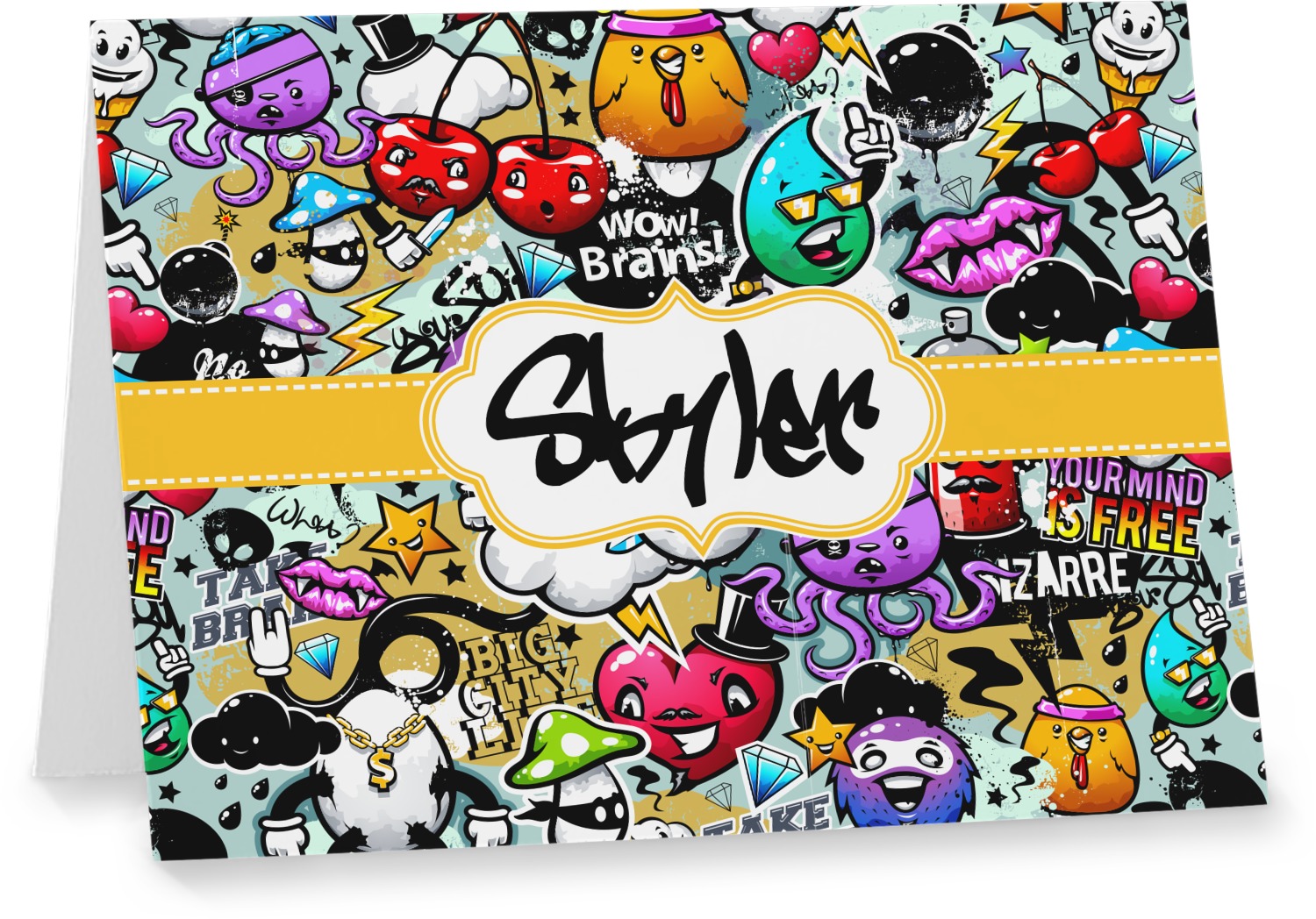 To personalized this design, we have added a ribbon with stitching along with a decorative label for your own text or name in a graffiti font!