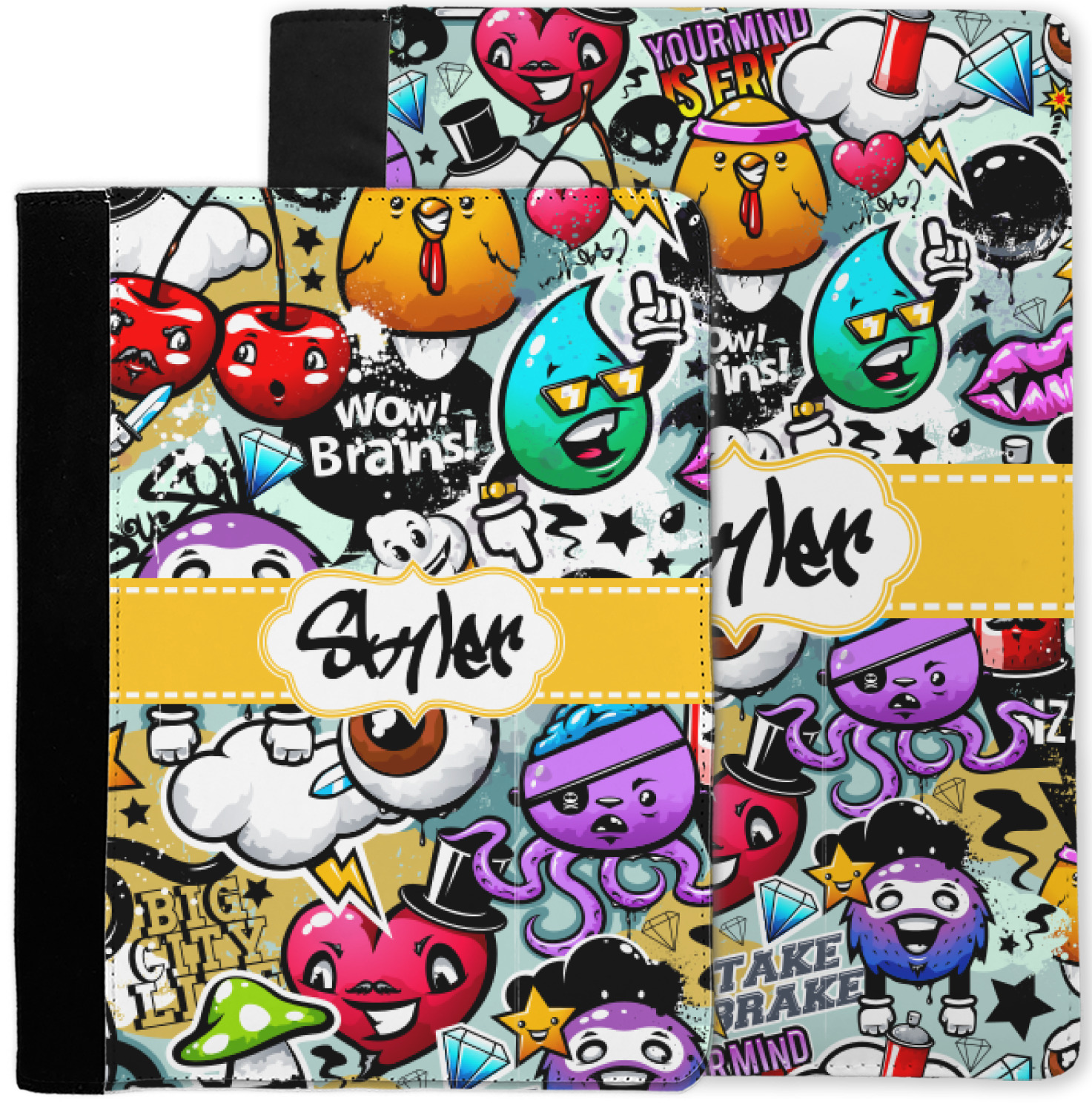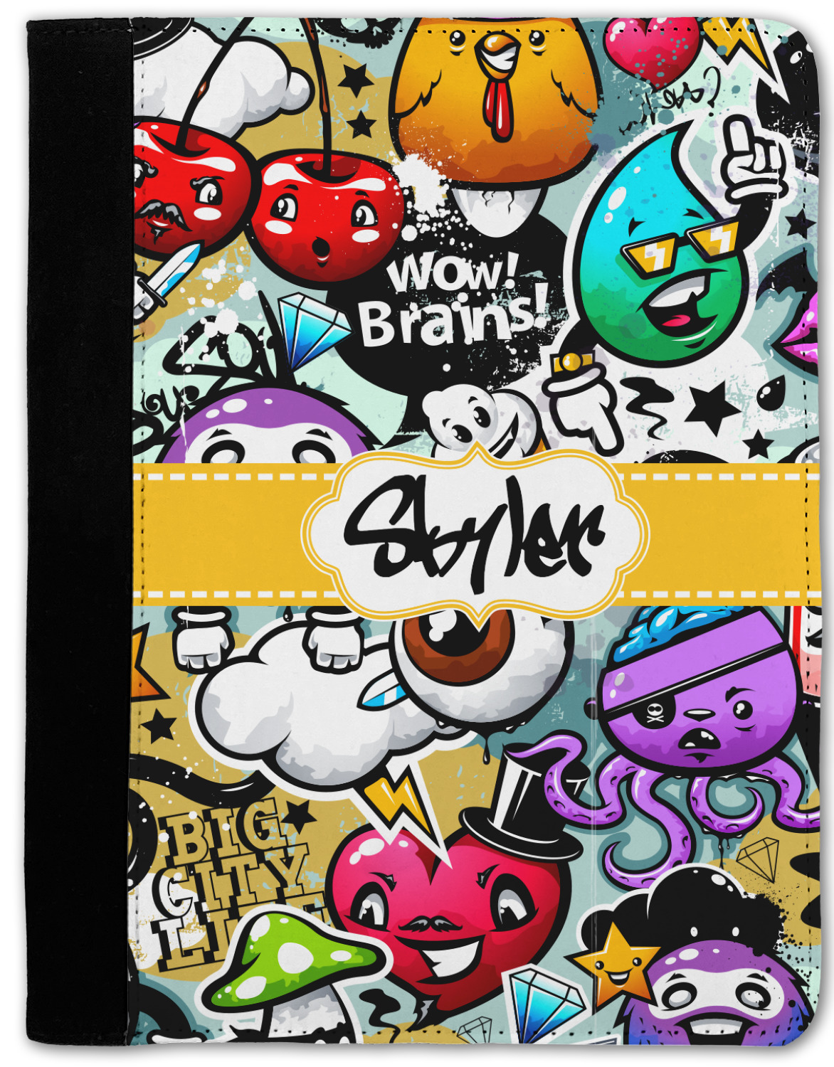 To personalized this design, we have added a ribbon with stitching along with a decorative label for your own text or name in a graffiti font!