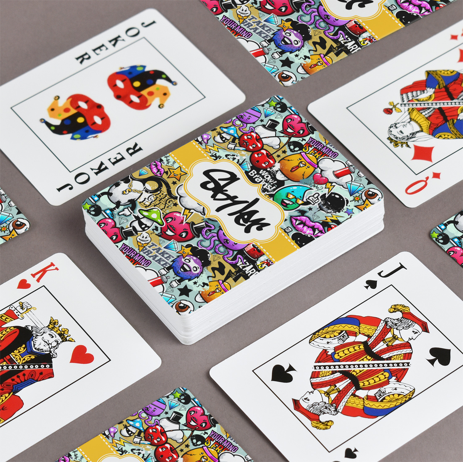 Our playing cards are perfect for family game nights or poker nights. A deck of customized playing cards ups the level of fun & entertainment to your game or poker nights. Imagine playing cards customized to match the theme of your game room, or game night, or that special event, or occasion with gambling tables!