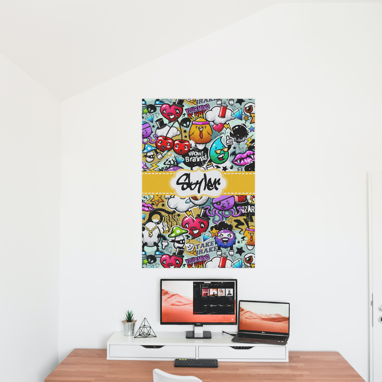 This graffiti art design is made of bizarre elements and characters. It is colorful; many of the elements have faces painted on them with a range of expressions. It is a fun design for anyone who appreciates graffiti art.
