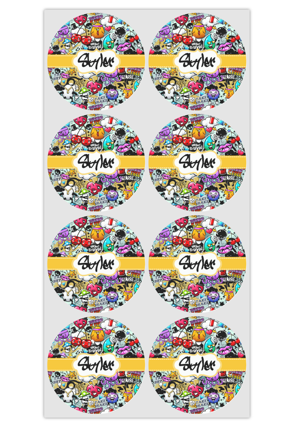 To personalized this design, we have added a ribbon with stitching along with a decorative label for your own text or name in a graffiti font!