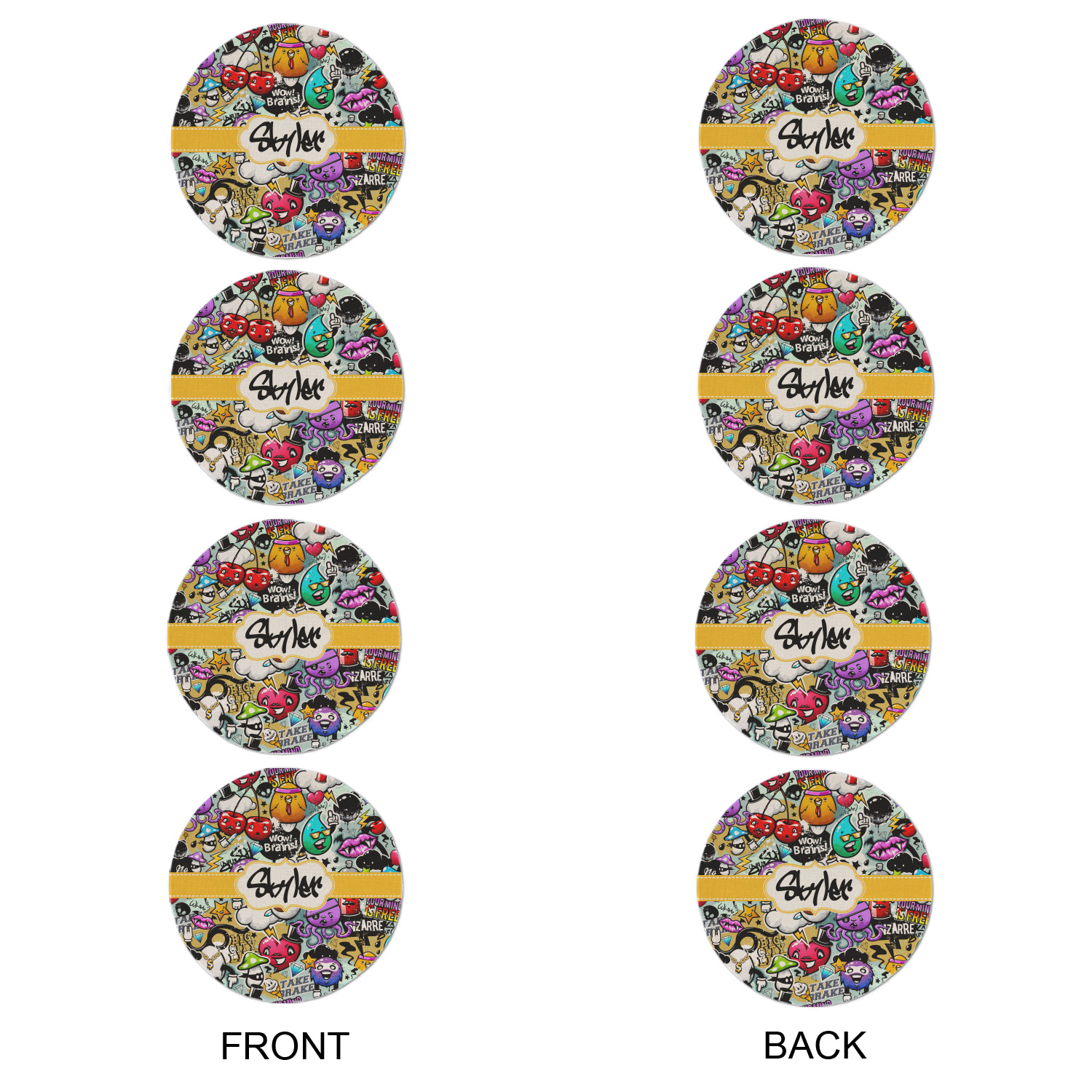 To personalized this design, we have added a ribbon with stitching along with a decorative label for your own text or name in a graffiti font!