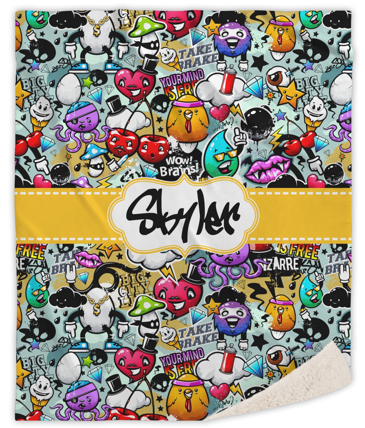 To personalized this design, we have added a ribbon with stitching along with a decorative label for your own text or name in a graffiti font!