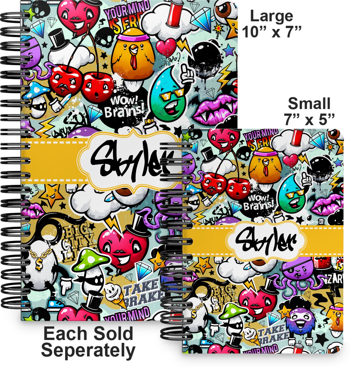 This spiral notebook includes 75 sheets of thick, ruled paper. The front and back of this custom notebook is made of a robust, laminate, plastic covering. We print your personalization on these two panels, underneath a glossy finish, which emphasizes the colors of your design. The two panels and the sheets of paper are held together by a sturdy, black coil. The paper within your bound notebook is perforated for easy, clean tearing.