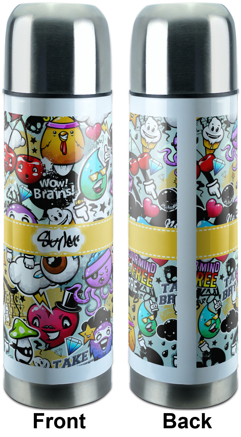 Transport your iced and heated drinks in style with our stainless steel thermos! This effective, custom thermos insulates your beverages for hours, while displaying a creative, personalized design completely of your choice!