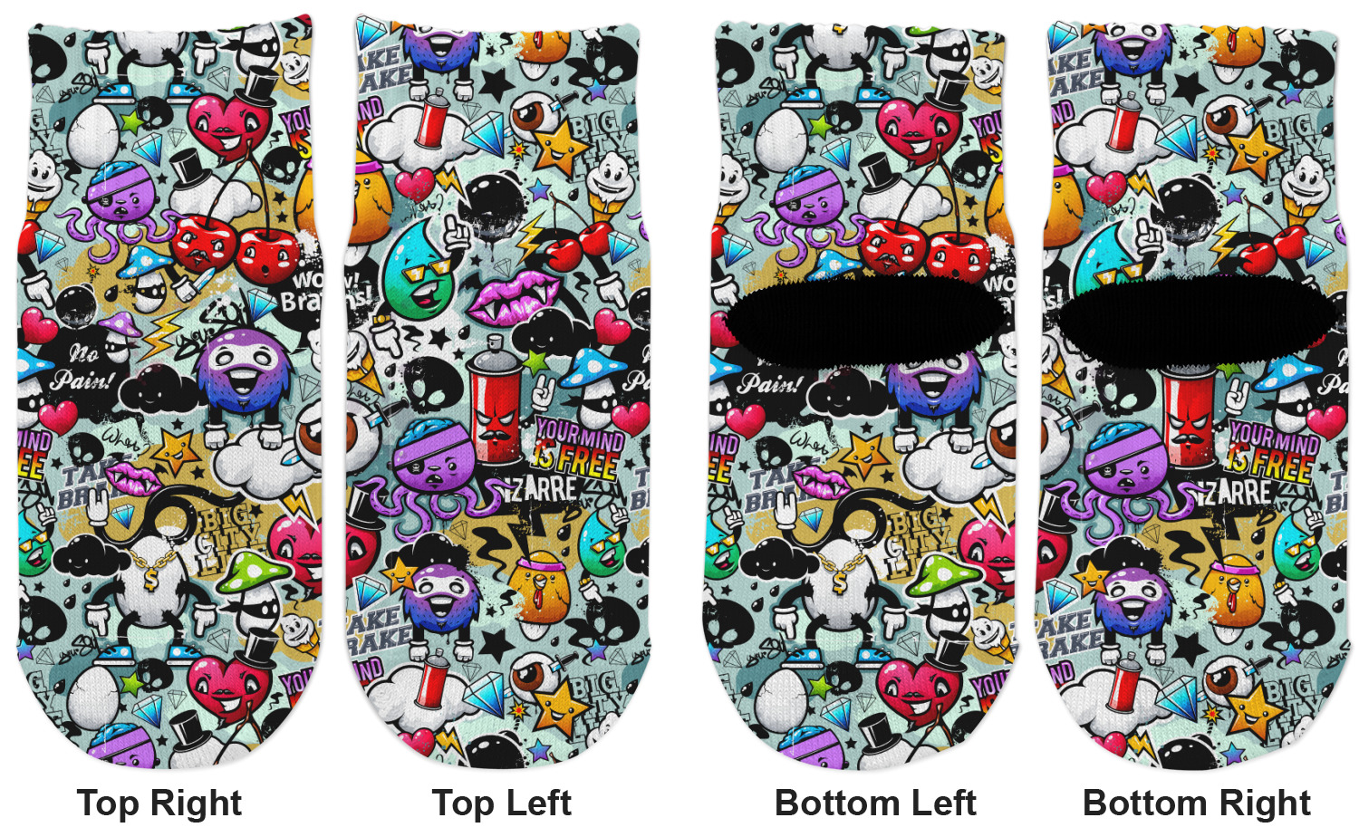This graffiti art design is made of bizarre elements and characters. It is colorful; many of the elements have faces painted on them with a range of expressions. It is a fun design for anyone who appreciates graffiti art.