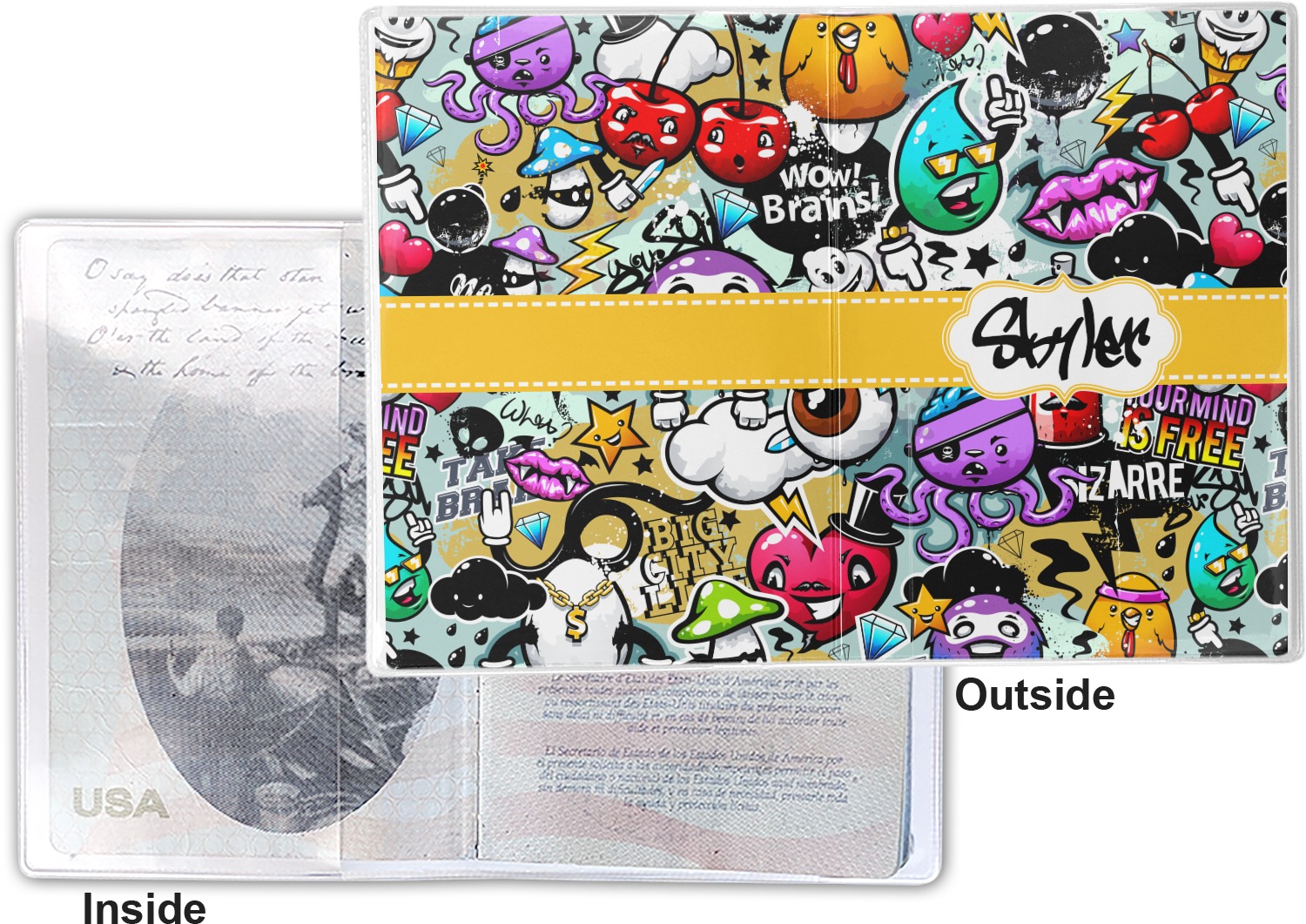 This cover is made of a sturdy clear vinyl with a personalized vinyl insert inside. There is a large and a small pocket on either side to hold the covers of your passport easily and firmly. The passport holder is approximately 7.5" x 5.25", the perfect size to snugly fit your passport. This slim cover is the perfect way to protect your passport without being one more bulky item you have to carry.