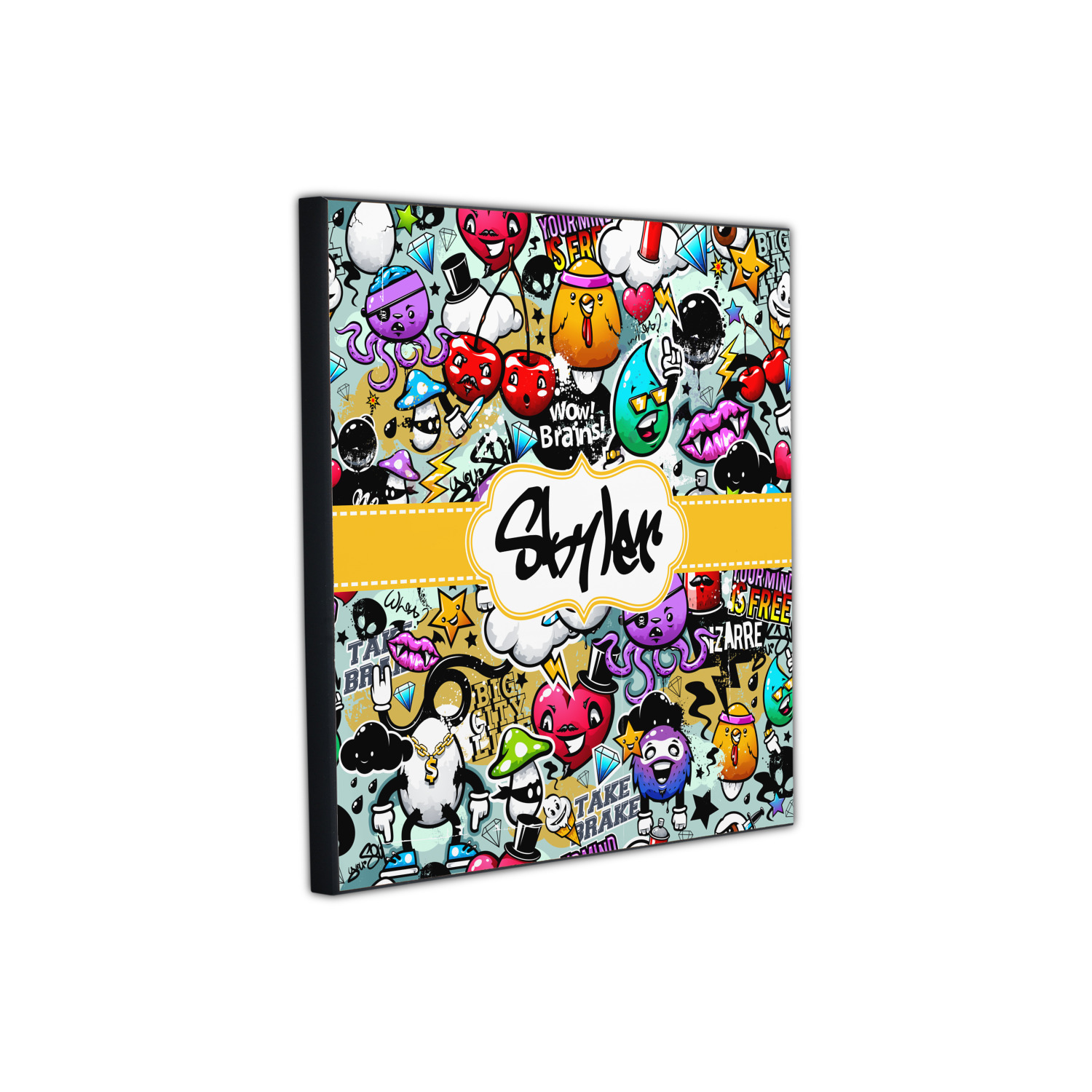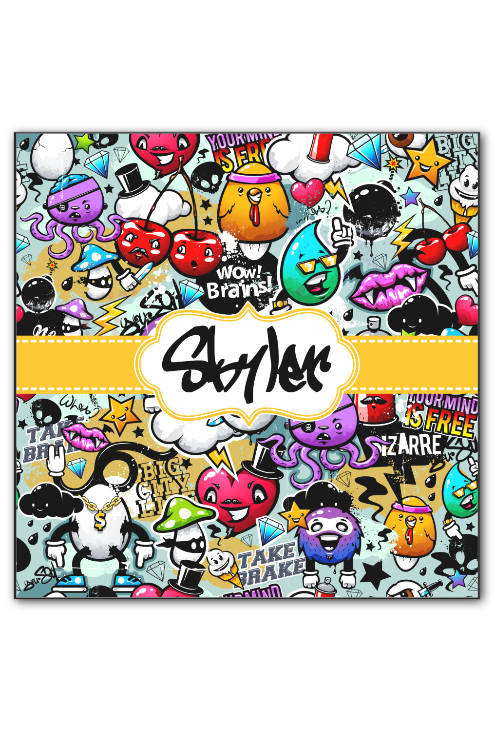 To personalized this design, we have added a ribbon with stitching along with a decorative label for your own text or name in a graffiti font!