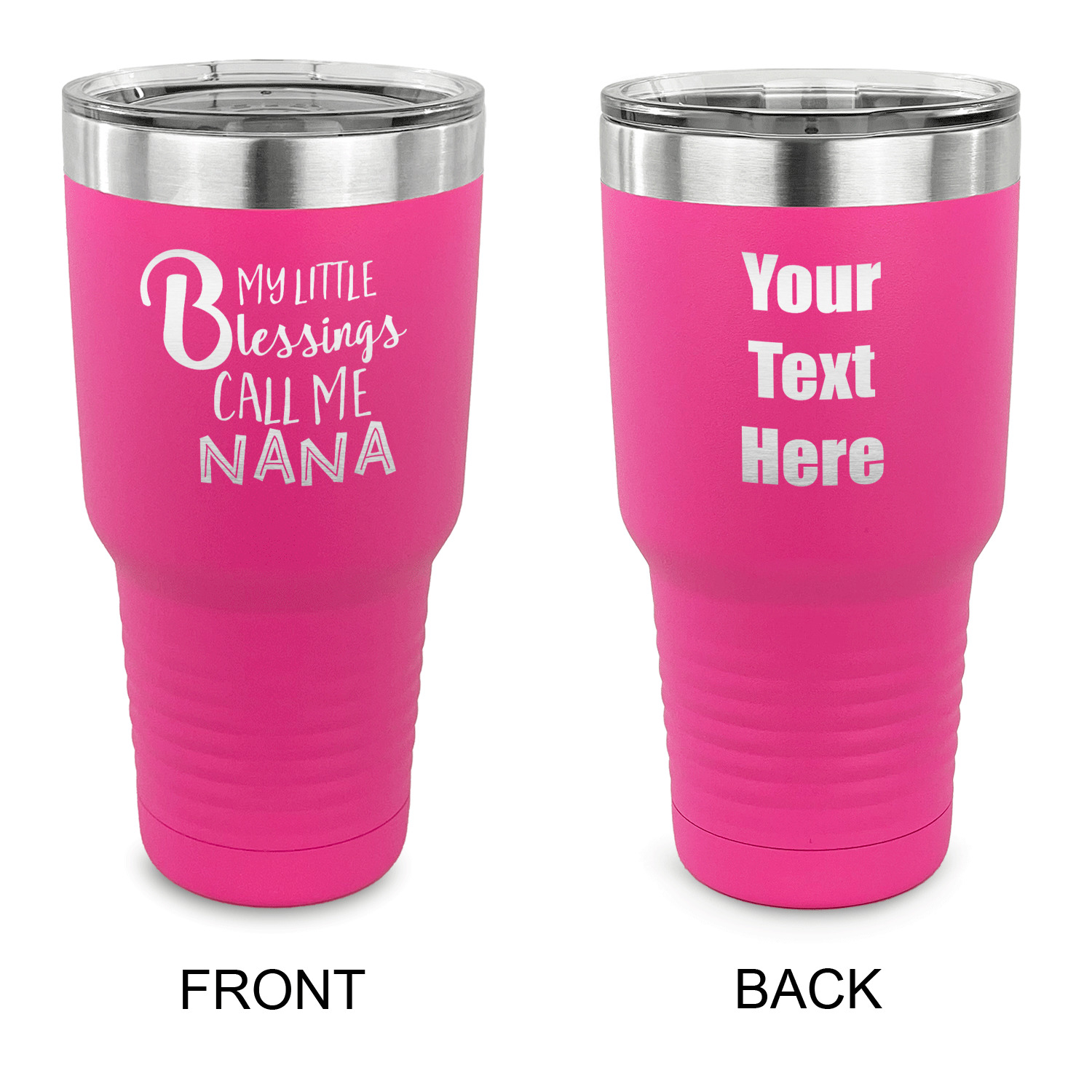 With our personalized 30 oz double wall stainless steel tumblers, you'll never have to settle for a plain, boring tumbler again! These tumblers will be a wonderful addition to your drinkware collection and will make those long commutes much brighter. Personalize one for yourself, or give these personalized tumblers as a gift to relatives, friends, or coworkers!