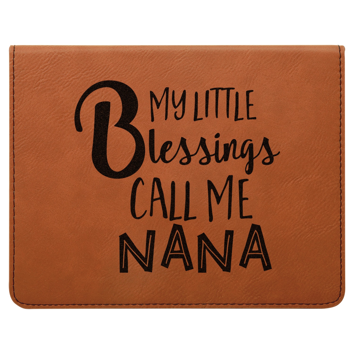 This set includes a wine stopper, pourer, drip ring, and a corkscrew! The exterior of the box is a gorgeous, cognac-brown leatherette, while the interior is covered in a black, velvety material. Four foam indentations, unique to the shape of the wine tool, are found at the bottom half of the box's interior. The tools fit snugly into each of their designated spots, and the foam material helps to protect the integrity of your tools. Each of the wine gadgets features a bamboo accent, with the location and style depending on the tool itself. We laser engrave your personalized design onto the lid of the box, which easily flips open and is secured closed by a small magnet. The wine accessories box measures at 7 by 5.5 inches in total.