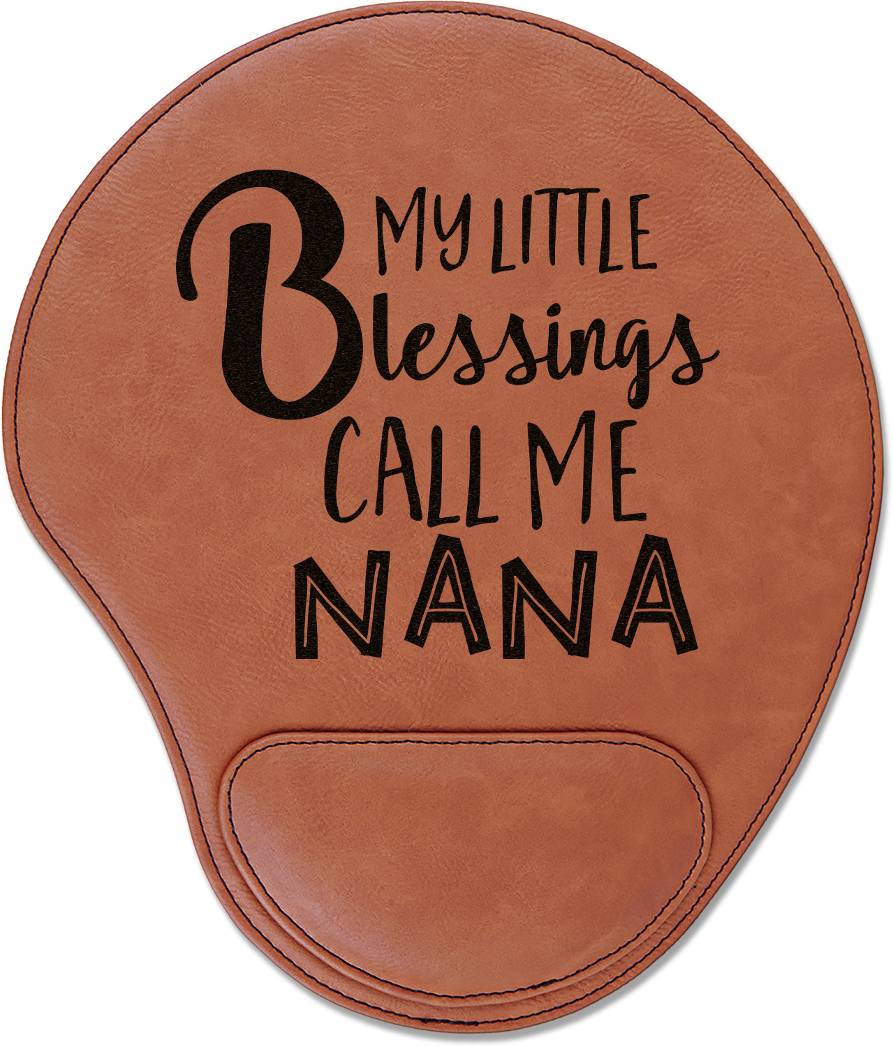 In a rounded shape, this mouse pad is made of a luxurious, cognac-colored leatherette. The nature of this material allows your mouse to glide smoothly across its surface. Strong stitching lines the edges to guarantee stability and strength. As added support for tired wrists, your personalized mouse pad features a supportive wrist rest at its bottom. This model measures at 10.25" x 9", while its wrist pad is approximately 5" x 2.75", with a thickness of 0.75". Your personalized design is laser engraved into the front face of this mouse pad.