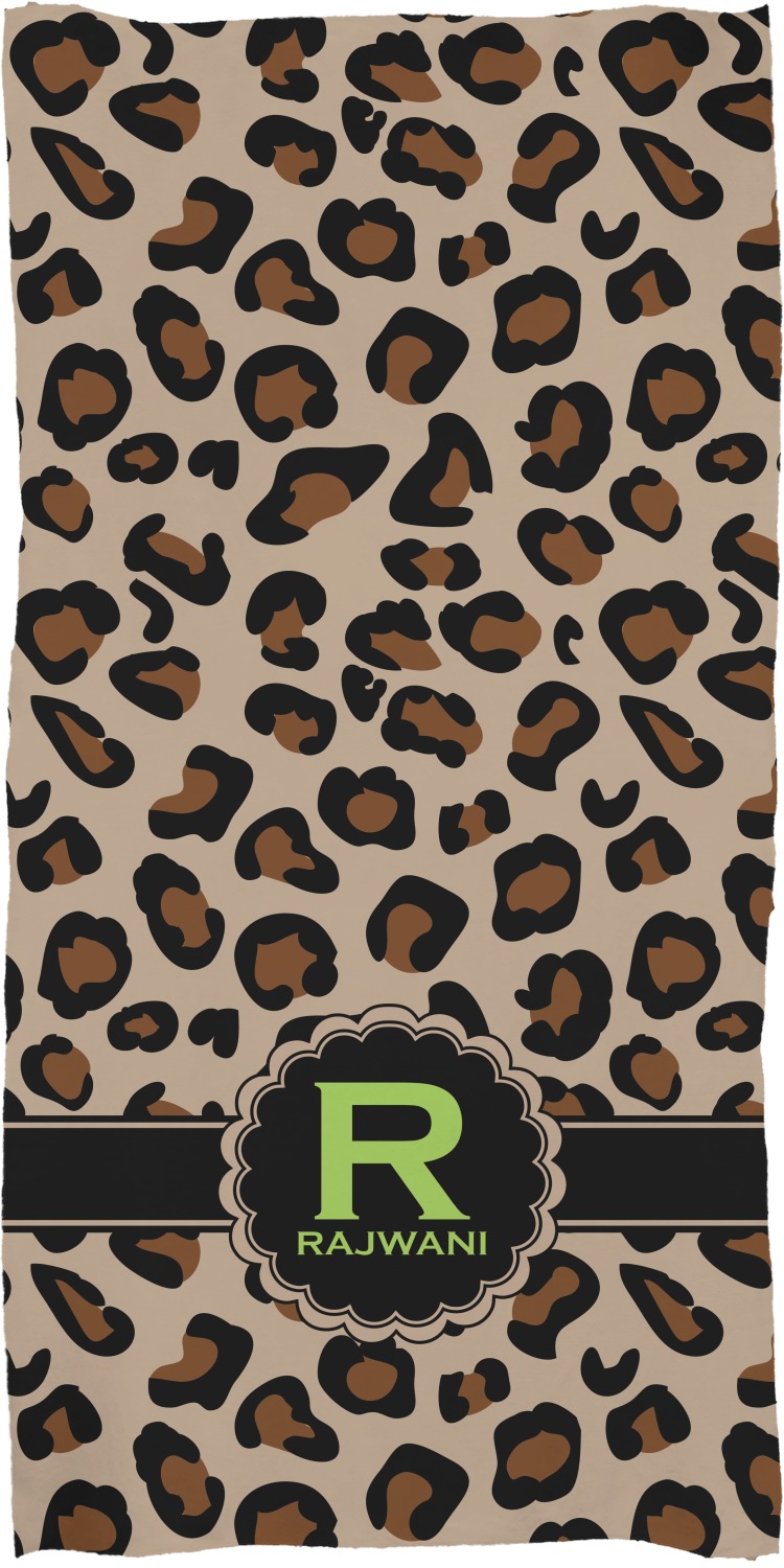 These customized bath towels are slightly larger than your standard towel and are the ideal size for wrapping around your body. They measure approximately 60" x 30". Your customization is displayed across the entire front face of the towel, while the back is white.