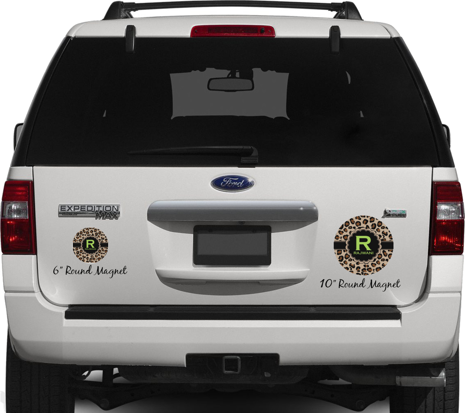 Your personalized car magnets are available for purchase in two shapes and two sizes. We carry round and square editions; each shape can either be 6 by 6 inches, or 10 by 10 inches, depending on your needs. Both versions are 1 millimeter thick, which is considered, within the industry, as the ideal thickness for automobile magnets. The magnetic car decals will adhere to any smooth, metal surface of your cars body, such as the trunk door or a side panel. However, please note that some vehicles are constructed from fiberglass bodies, which prevents the adhesion of anything magnetic. We advise that you test your vehicle before purchasing these magnets.