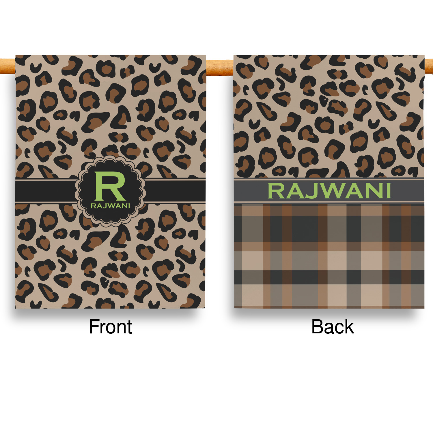 These custom garden flags are made of a durable, double-ply, polyester weave, allowing them to withstand the elements year round. The small flags measure at approximately 12 by 18 inches. The large flags measure out to 28 by 37 inches. You can order these decorative flags with your customization printed on the front only, or the front and back.