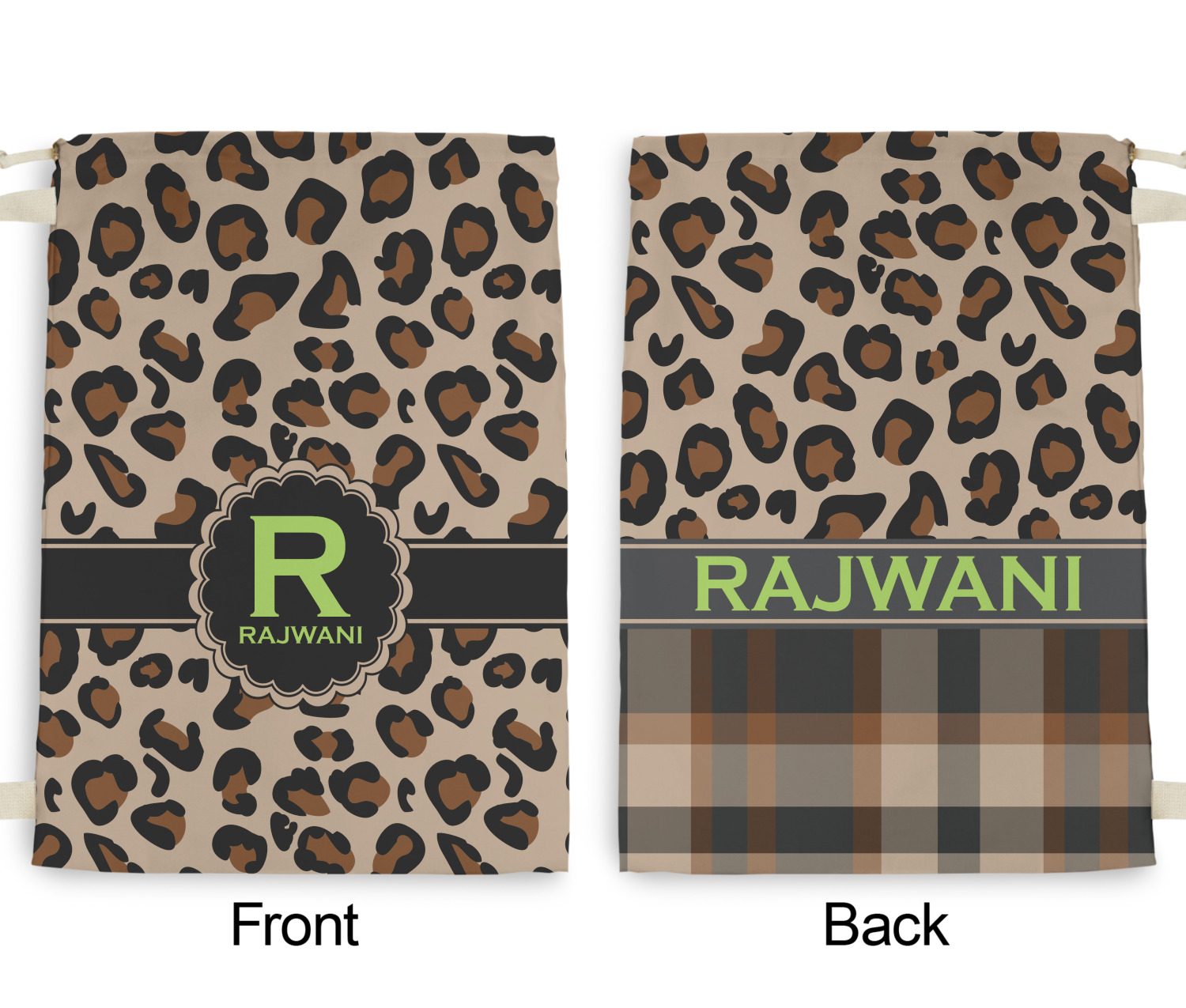 Carry your laundry in style with these customized laundry bags. Available in two sizes, featuring a natural colored woven strap and a cinch cord, these bags hold a lot of clothes or anything else you want to fit in them.