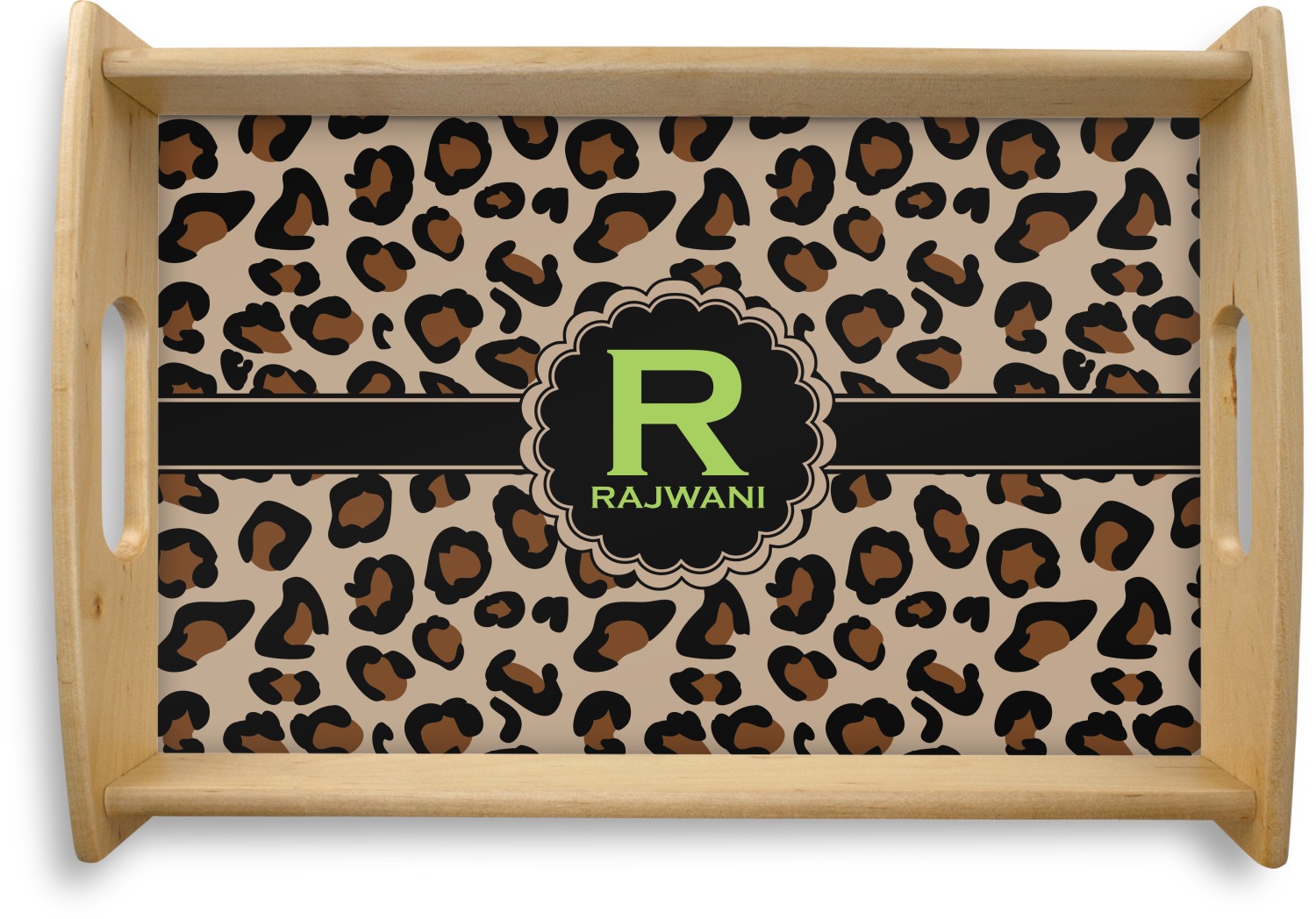 This serving tray with handles features square edges and two rounded sides, creating a very modern look. Each side is fabricated from a beautifully cut, natural wood. The bottom of the interior of the tray displays your customized design in bright, vibrant color. The tray is sold in both a black color and a natural wood look. Each variation of the wood serving tray has two sizes: Small, which is 14" x 10" x 2.25", and Large, which is 19.5" x 13.5" x 2.75".