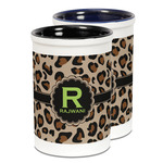 A wide black band trimmed in tan complete this design. A black scalloped circle outlined in tan highlight the personalization of your choice.