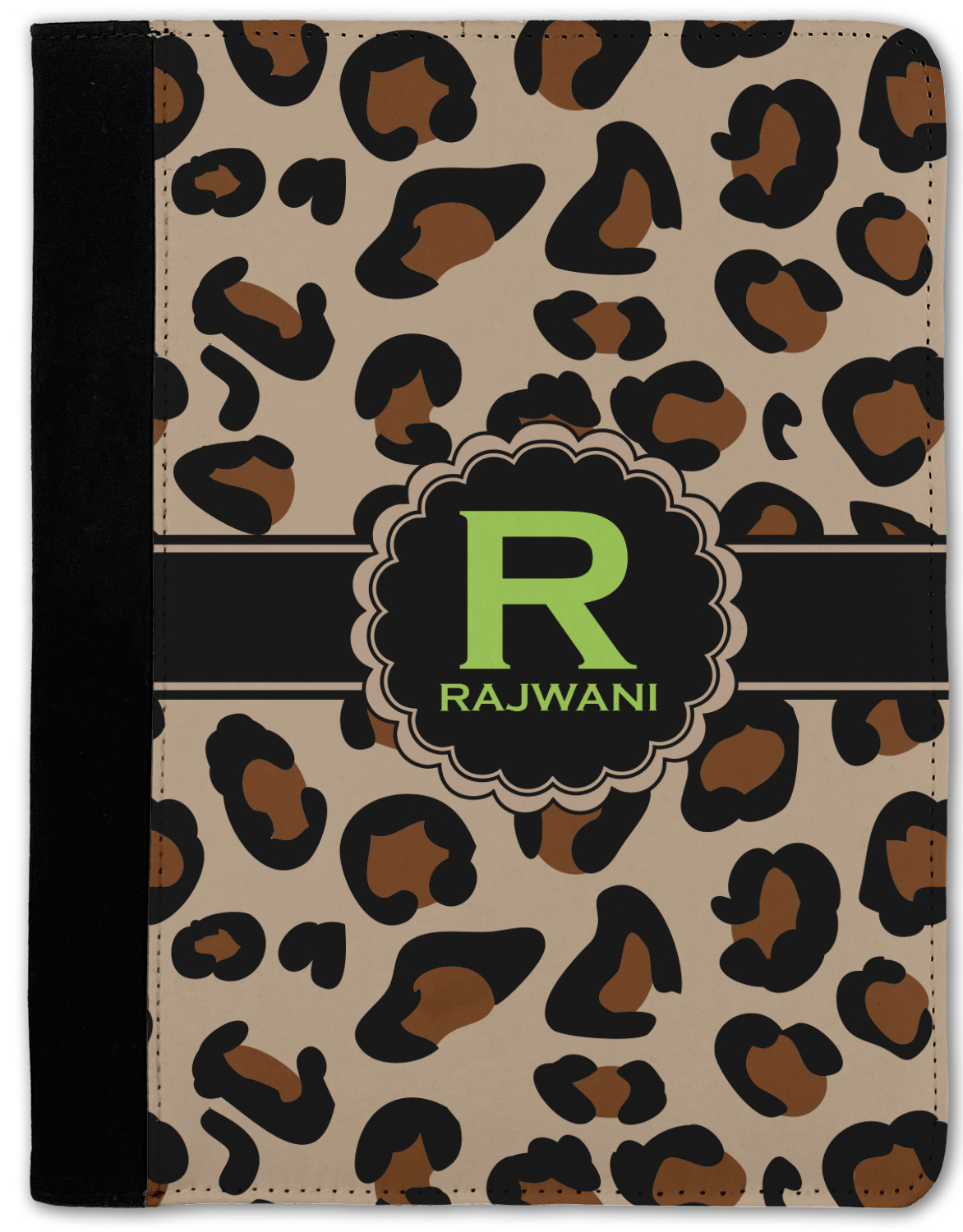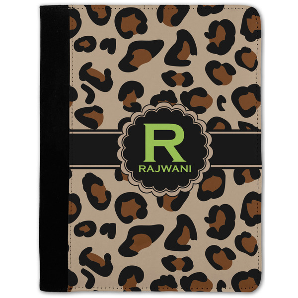 These personalized padfolios are made from a black, polyester microfiber and features a standard, 50-page notepad. However, these black padfolios can accommodate a pad with up to 100 pages. This model also features a slot pocket for any loose sheets of paper, small pockets for business cards, and an elastic band to secure a pen. We print your personalization across the front of this notepad portfolio in bright, vibrant color. These padfolios come in 2 sizes, Medium - approximately 10.25" x 8" for 5" x 8" paper and Large - approximately 12.5" x 8.5" for 8.5" x 11" paper.