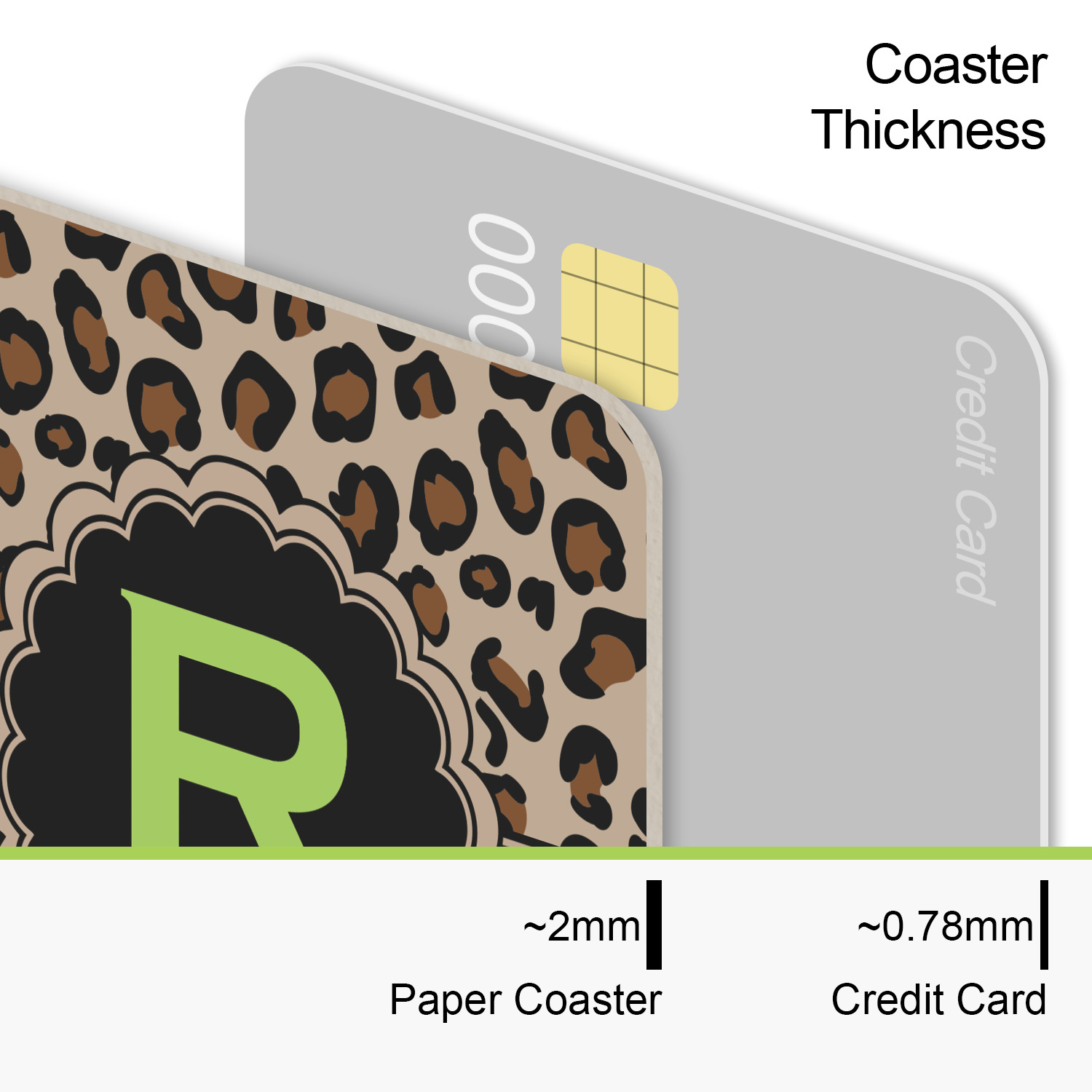These coasters are perfectly sized for just about any drink being a 4"in square. The paper construction is a thick heavyweight 80 point pulpboard perfect for absorbing the condensation on the outside of your glass.