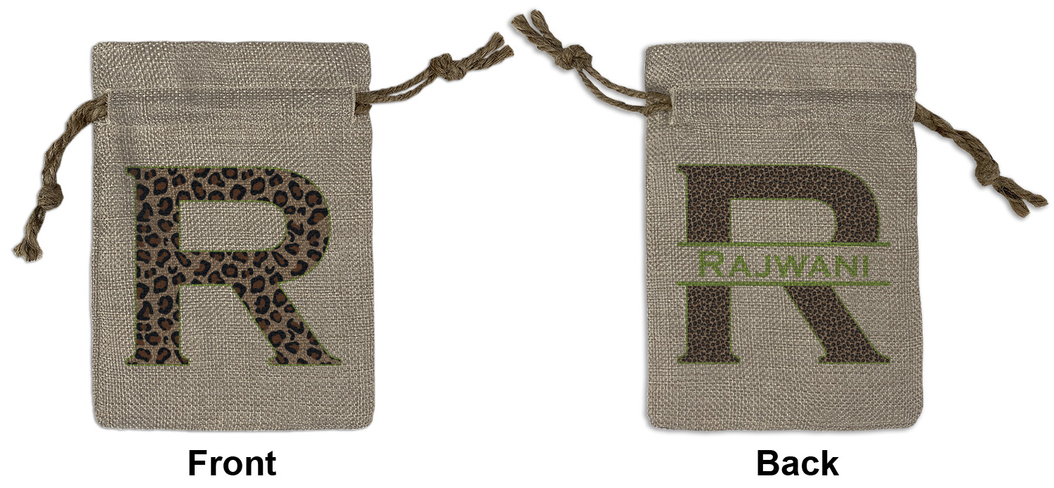 We sell our Burlap Gift Bags in 3 variant sized bags. Made with burlap polyester, each personalized bag can be secured with a twine drawstring pull. Your custom design is available to print on one side or both sides - completely up to you! The sizes of the bags measure approximately 4.5" x 6.5" for the smallest size, 6.5" x 8.0" for the medium size, and 6.5" x 13.5" for the large-sized bag.