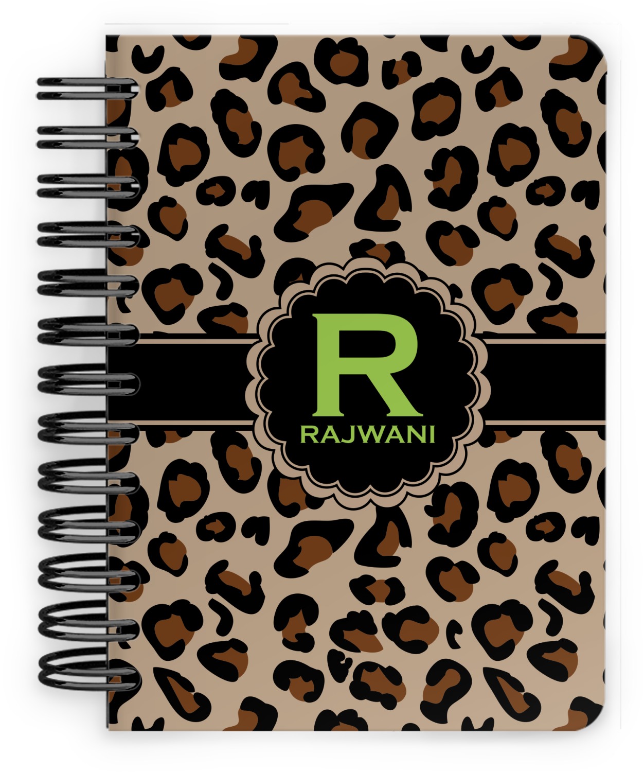 This spiral notebook includes 75 sheets of thick, ruled paper. The front and back of this custom notebook is made of a robust, laminate, plastic covering. We print your personalization on these two panels, underneath a glossy finish, which emphasizes the colors of your design. The two panels and the sheets of paper are held together by a sturdy, black coil. The paper within your bound notebook is perforated for easy, clean tearing.