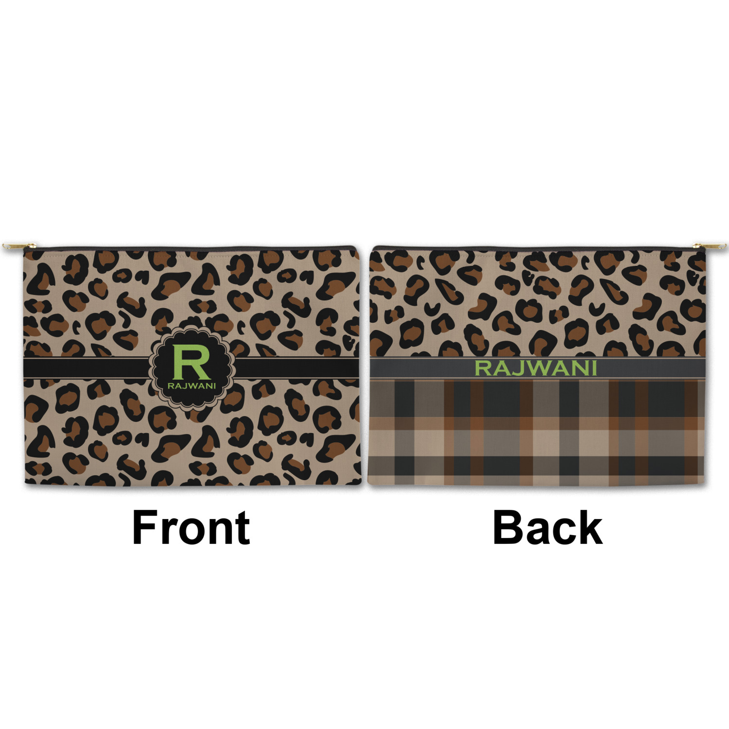 You can design both the front and the back of the pouch - same design, two complementary designs or two totally different designs - the choice is yours! We offer many different personalization styles i.e. name, name & initial, monograms - so the choice to personalize is also yours.