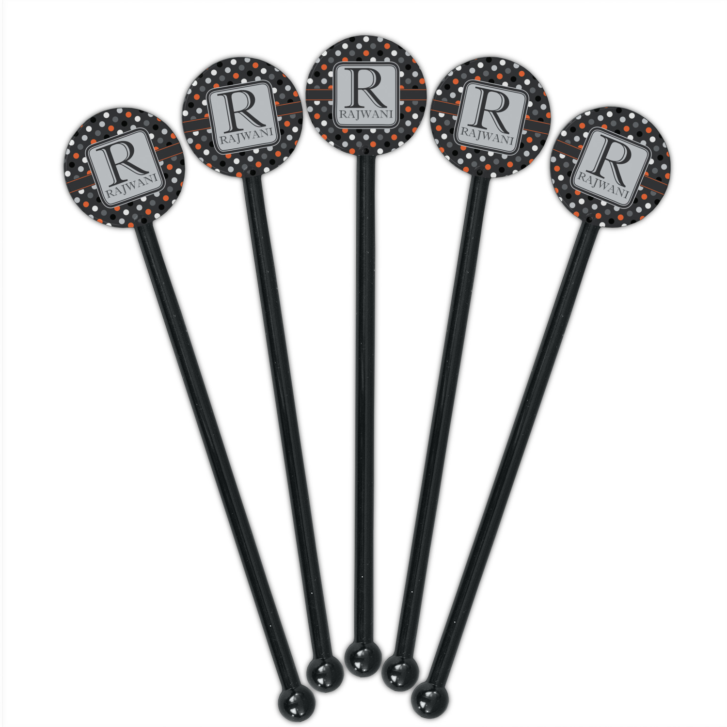 Shape + Symbol Designs for 5.5" Round Plastic Stir Sticks - Black - Single-Sided