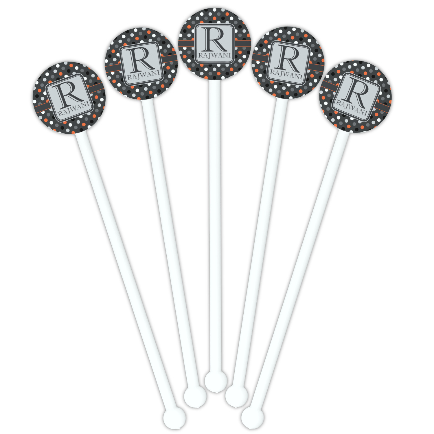 Shape + Symbol Designs for 5.5" Round Plastic Stir Sticks - White - Single-Sided